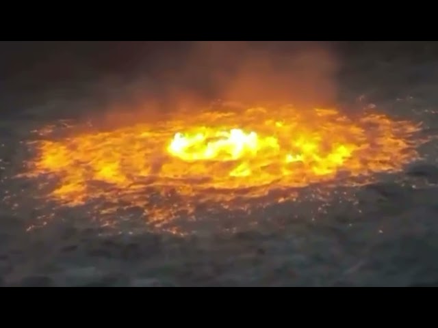 Hadisə yerindən yayılmış videogörüntülərdə əriyən isti lavanı xatırladan alovların dənizin səthinə qalxdığını görmək olar.