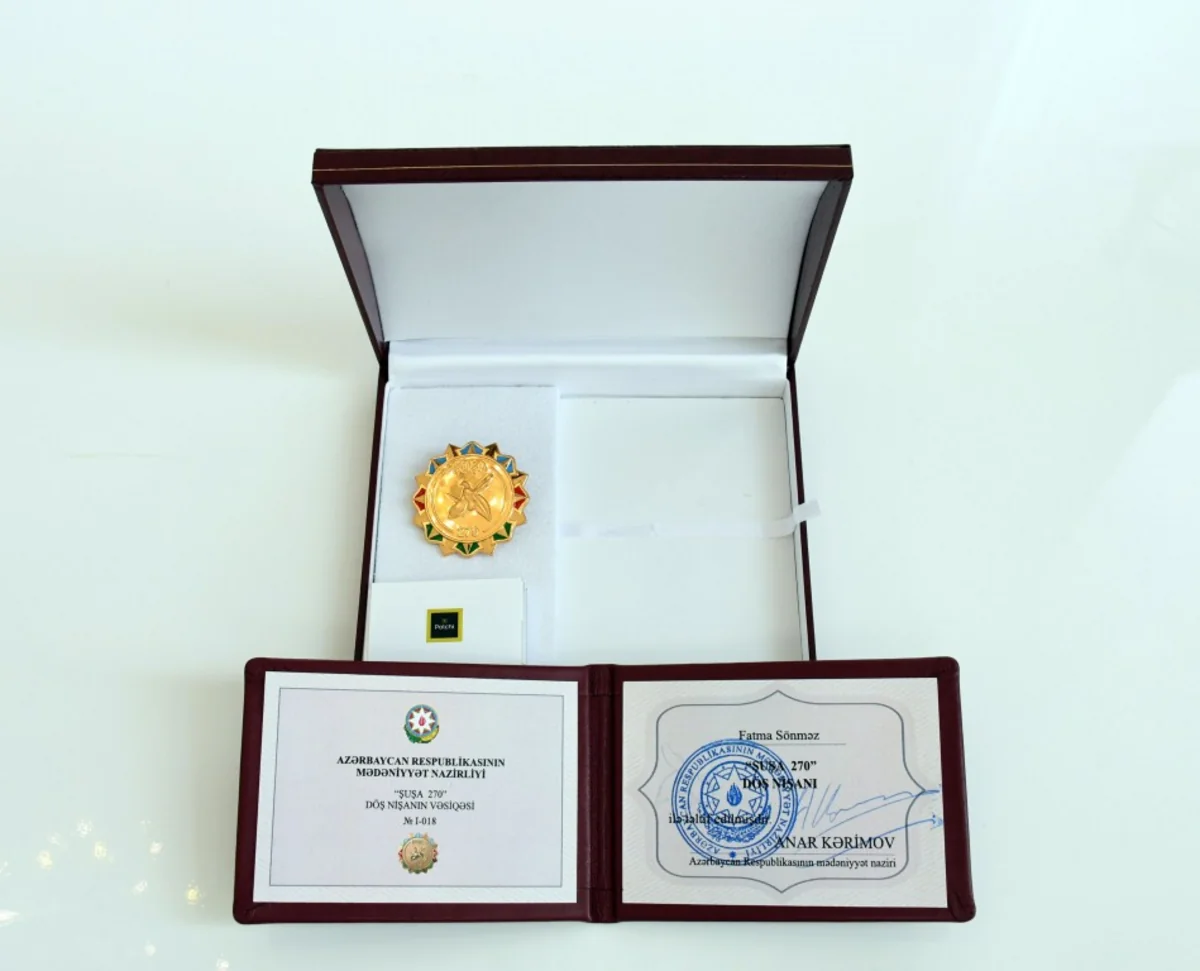 Bildirilib ki, türk dünyasının görkəmli ziyalısı F. Sönməzi səmimi salmlayan nazir istər işğal dövründə, istərsə də tarixi Zəfərimizdən sonra Azərbaycanın tarixi torpaqları Qarabağın, Şuşanın beynəlxalq içtimaiyyətə tanıdılmasında gördüyü əvəzsiz işlər üçün ona dərin təşəkkürünü bildirib, həmçinin “Şuşa 270” Döş nişanı ilə təltif edib.