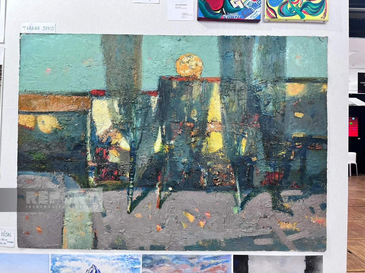 “Report”un yerli bürosu xəbər verir ki, sərgidə azərbaycanlı rəssamlar Əsmər Nərimanbəyova, Sahib Əsədli, Təranə Seyid və Vüsal Bağırovun əsərləri yer alıb.