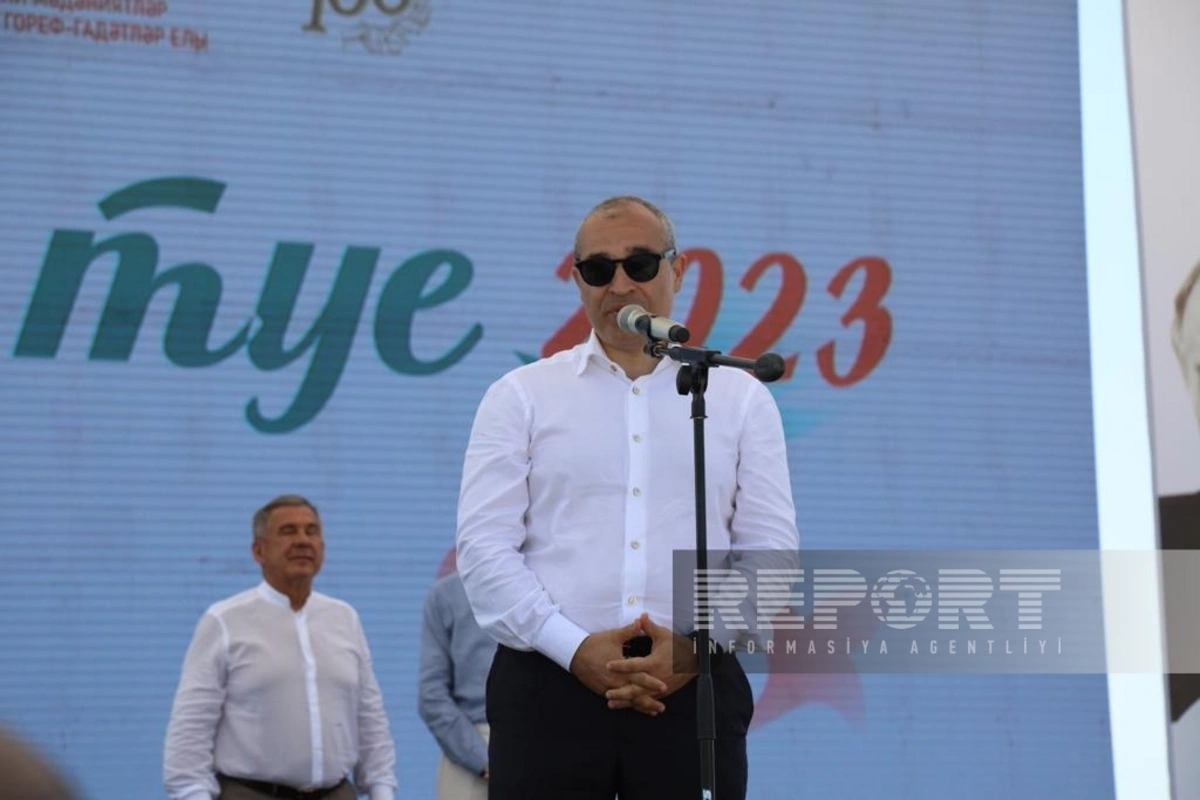 "Sabantuy 2023" tədbirinin açılışında çıxış edən Tatarıstanın Rəisi Rüstəm Minnixanov qeyd edib ki, Sabantuy bayramının tatarların yaşadığı bir çox ölkələrdə, eləcə də Azərbaycanda keçirilməsinin xalqlar arasında dostluq və əməkdaşlıq tellərini gücləndirir.