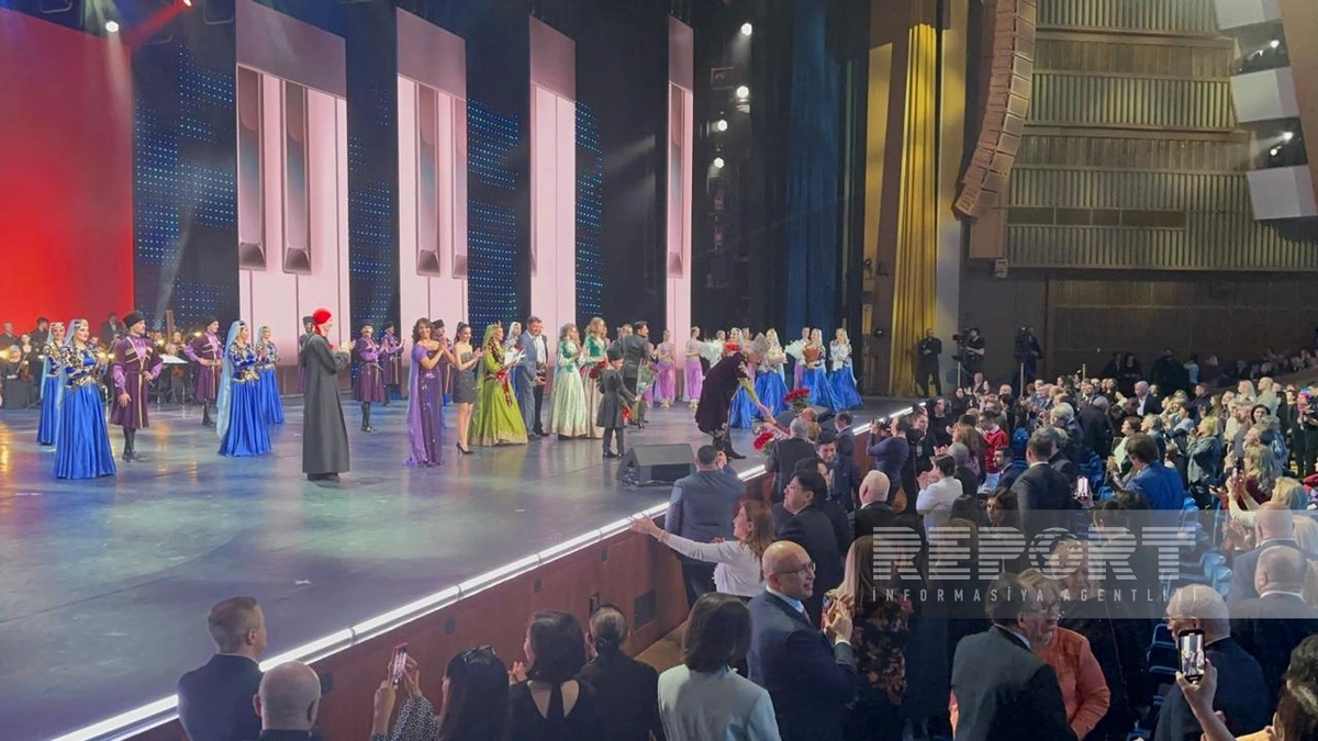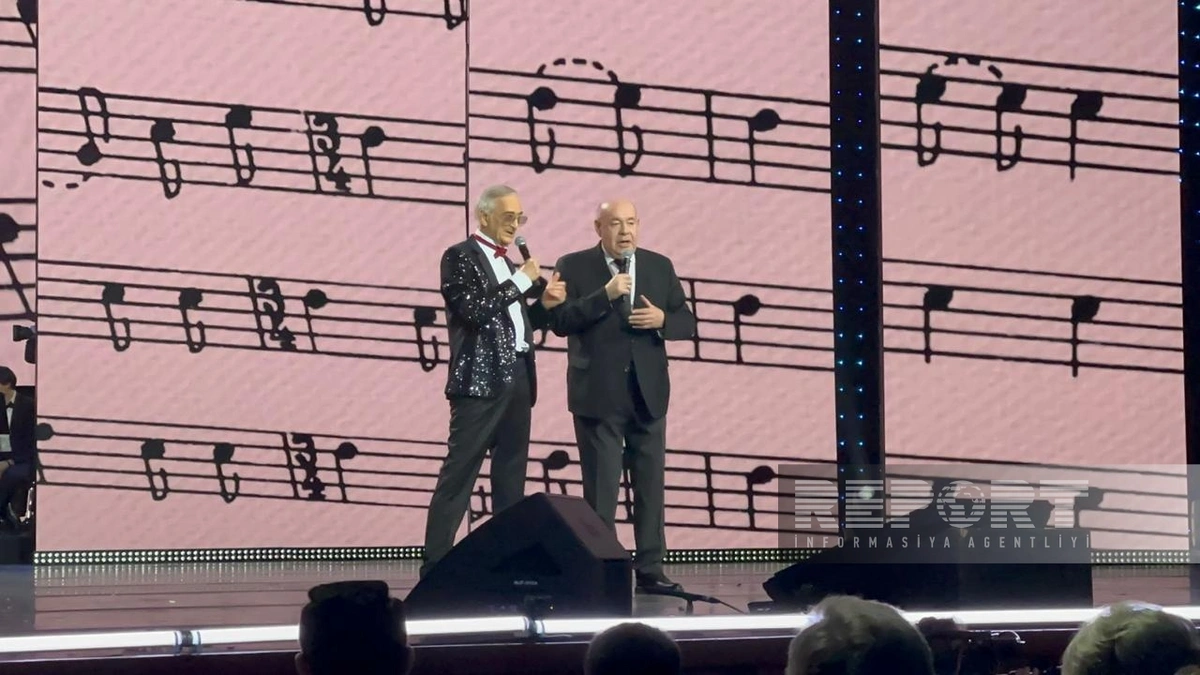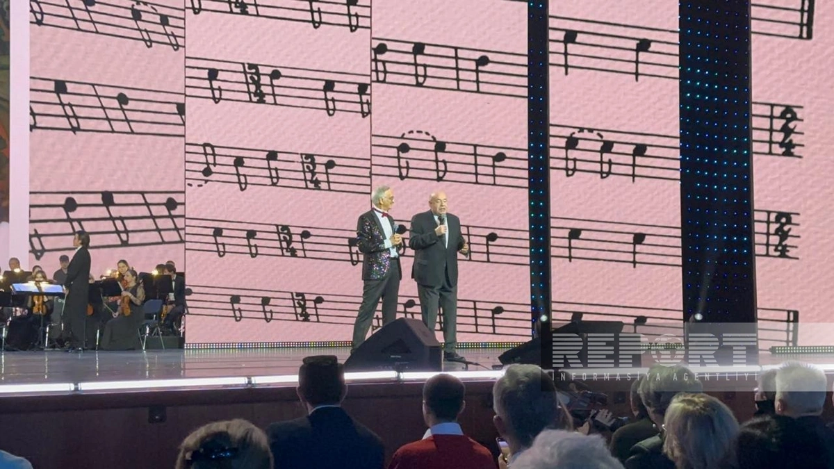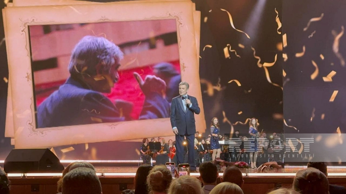 Yubilyarı səhnədən Rusiyanın xalq artistləri Lev Leşşenko, Sergey Bezrukov, SSRİ xalq artisti Fərhad Bədəlbəyli, Azərbaycanın xalq artistləri Yusif Eyvazov, Elçin Əzizov, Dinarə Əliyeva, Özbəkistanın xalq artisti Fərrux Zakirov, həmçinin Azərbaycan Dövlət Rəqs Ansamblı, O. Lundstrem Dövlət Kamer Caz Orkestri, Y.V. Silantyev Akademik Böyük Konsert Orkestri təbrik edib.