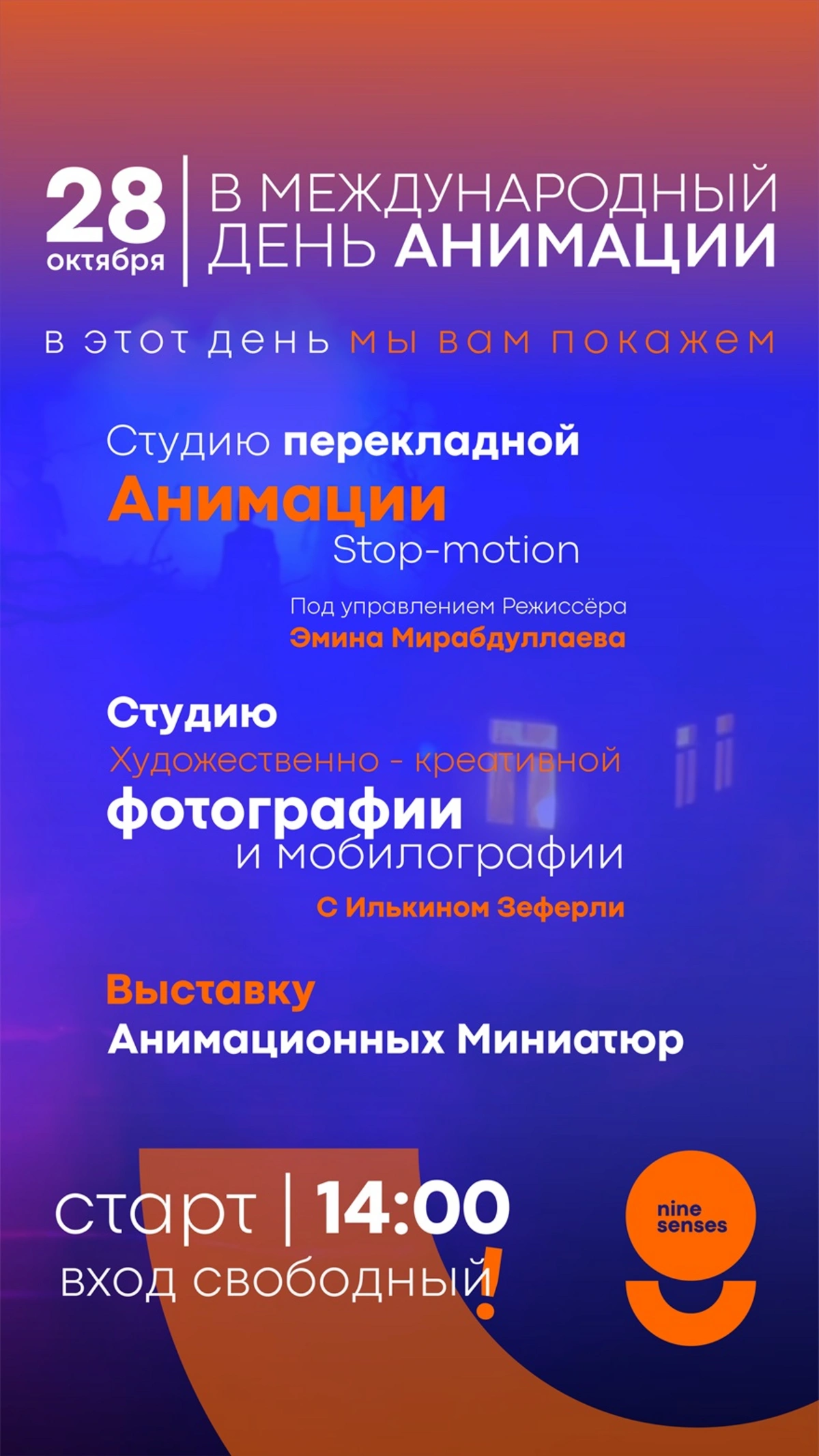 Oktyabrın 28-də Beynəlxalq Animasiya Günündə “Nine Senses” yaradıcılıq və özünüinkişaf mərkəzi rejissor Emin Mirabdullayevin rəhbərliyi ilə Bakıda “Anima” animasiya studiyasının və fotoqraf İlkin Zəfərlinin rəhbərliyi ilə bədii-kreativ fotoqrafiya və mobiloqrafiya studiyasının açılışı olacaq.