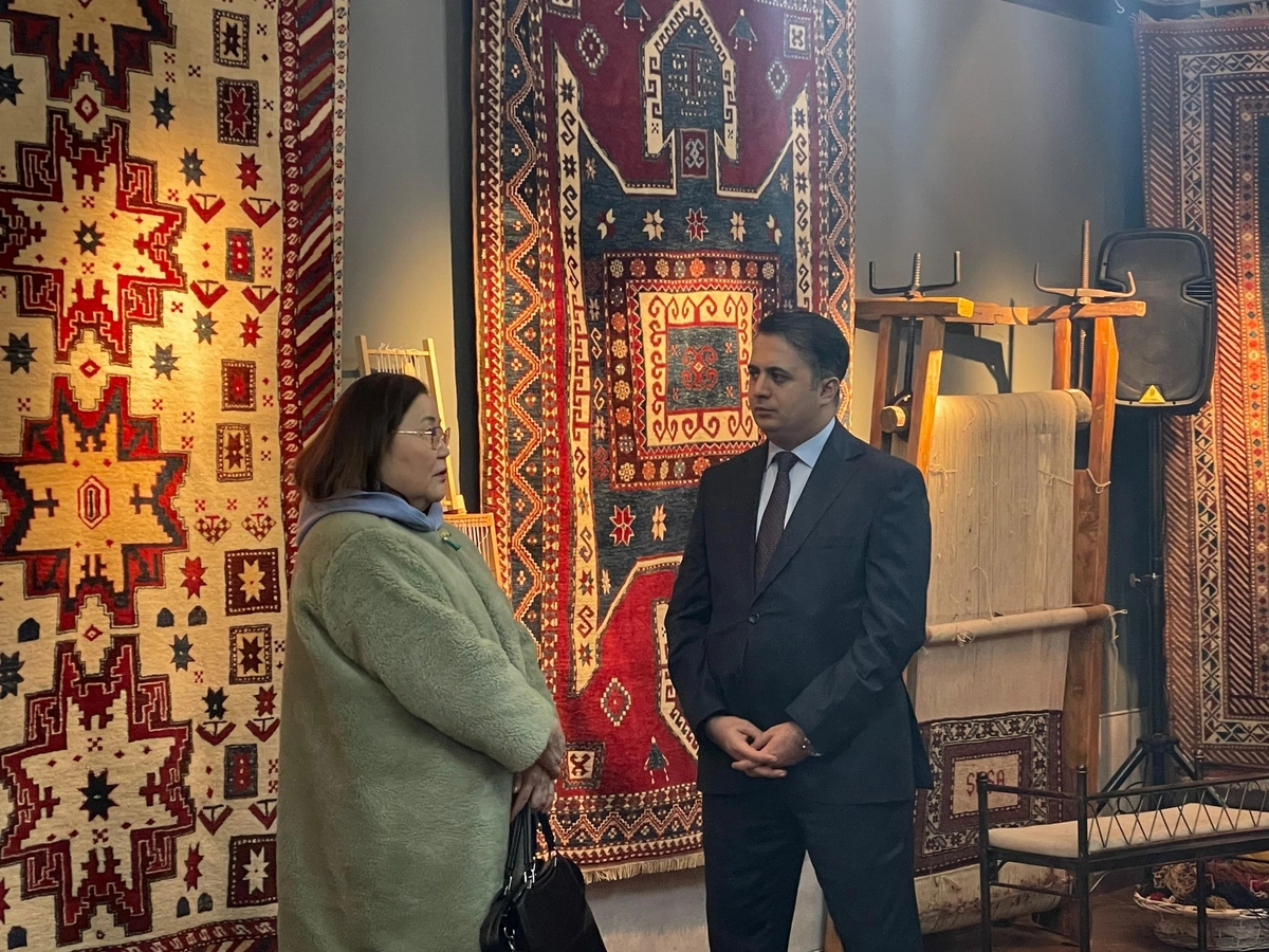 Sonra Azərbaycan səfirliyinin əməkdaşı Ramiz Hacızadı Azərbaycanın xalçaçılıq sənətinin inkişaf tarixindən danışıb.