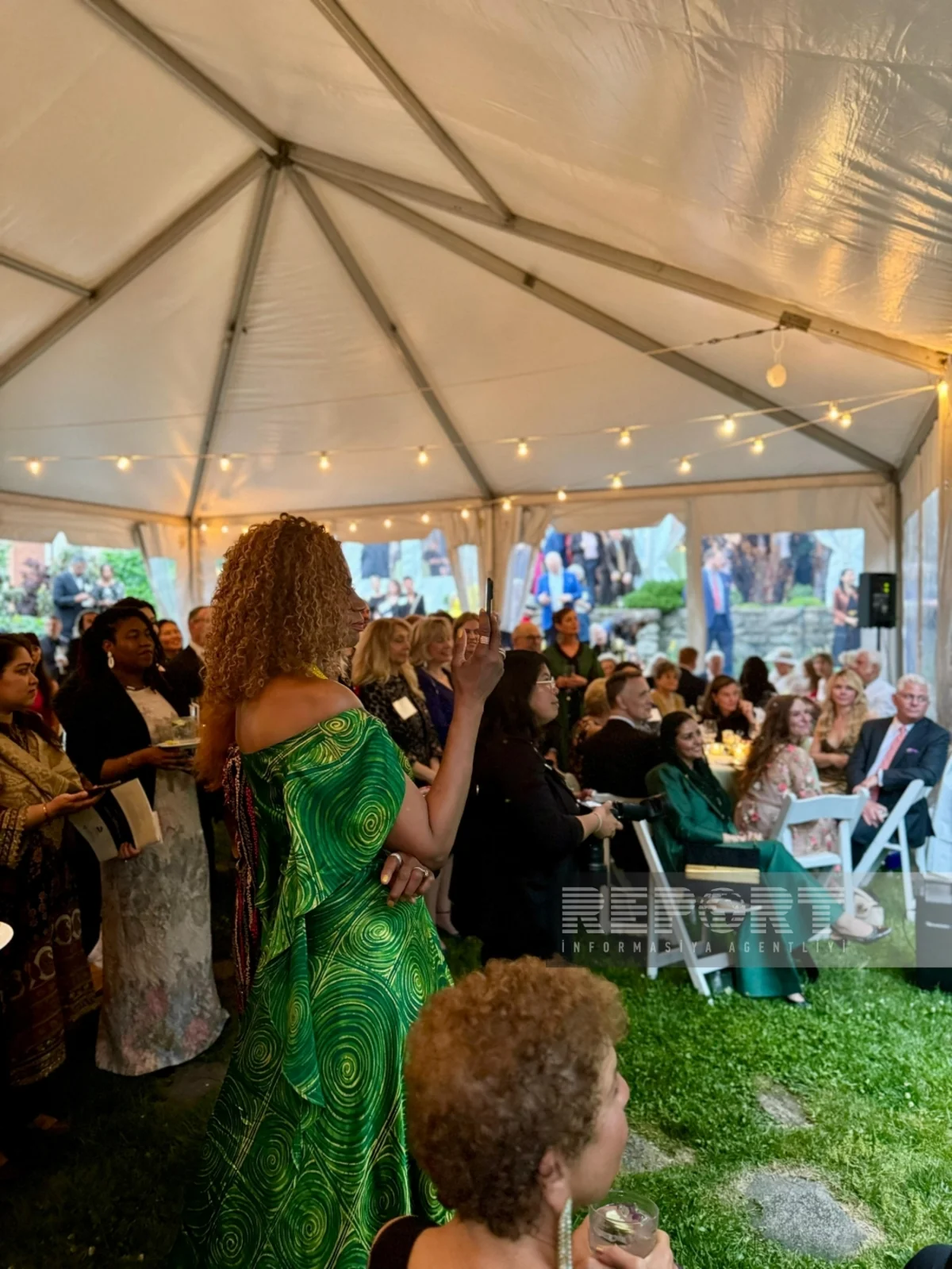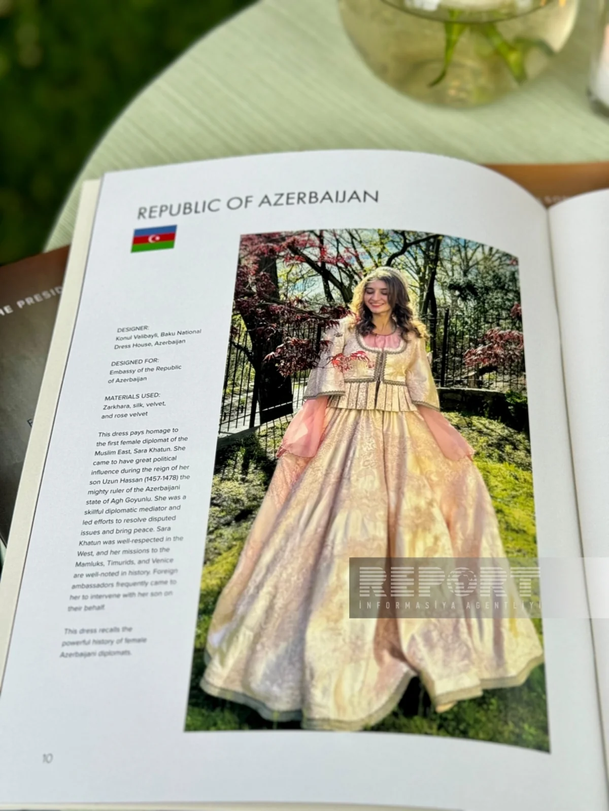 “Report”un ABŞ bürosu xəbər verir ki, “Fashioning Power, Fashioning Peace” adı altında baş tutmuş sərgidə Azərbaycanın Vaşinqtondakı səfirliyinin səyləri ilə nəfəsi əsirlərdən gələn zərxaradan (zərli ipəkdən toxunulmuş parlaq və şax ipək parça) və məxmər, qızılgül çiçəyi parçasından tikilən Azərbaycanın milli libası təqdim olunub.