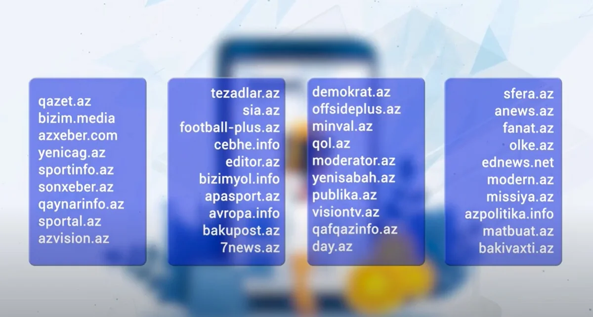 Həmçinin MEDİA tərəfindən onlayn media subyektlərinin (veb-saytların) inkişafı, iqtisadi müstəqilliyinin gücləndirilməsi, fəaliyyətinin təkmilləşdirilməsi, habelə dövlət və cəmiyyət üçün əhəmiyyət kəsb edən layihələrin həyata keçirilməsi məqsədilə təşkil edilən müsabiqənin nəticələri ilə buradan tanış ola bilərsiniz.