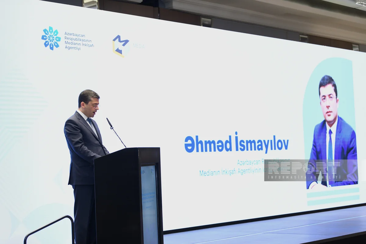 "Report" xəbər verir ki, konfransın açılış mərasimində çıxış edən Medianın İnkişafı Agentliyinin İcraçı direktoru Əhməd İsmayılov dünya miqyasında rəqəmsal texnologiyaya sürətli keçidinin, iqtisadiyyatın bütün ənənəvi sahələrində olduğu kimi media sahəsində də innovasiya və texnologiyaların tətbiqinin və ən əsası bunu bacara bilən kadrların hazırlanmasının zəruriliyini qeyd edib.