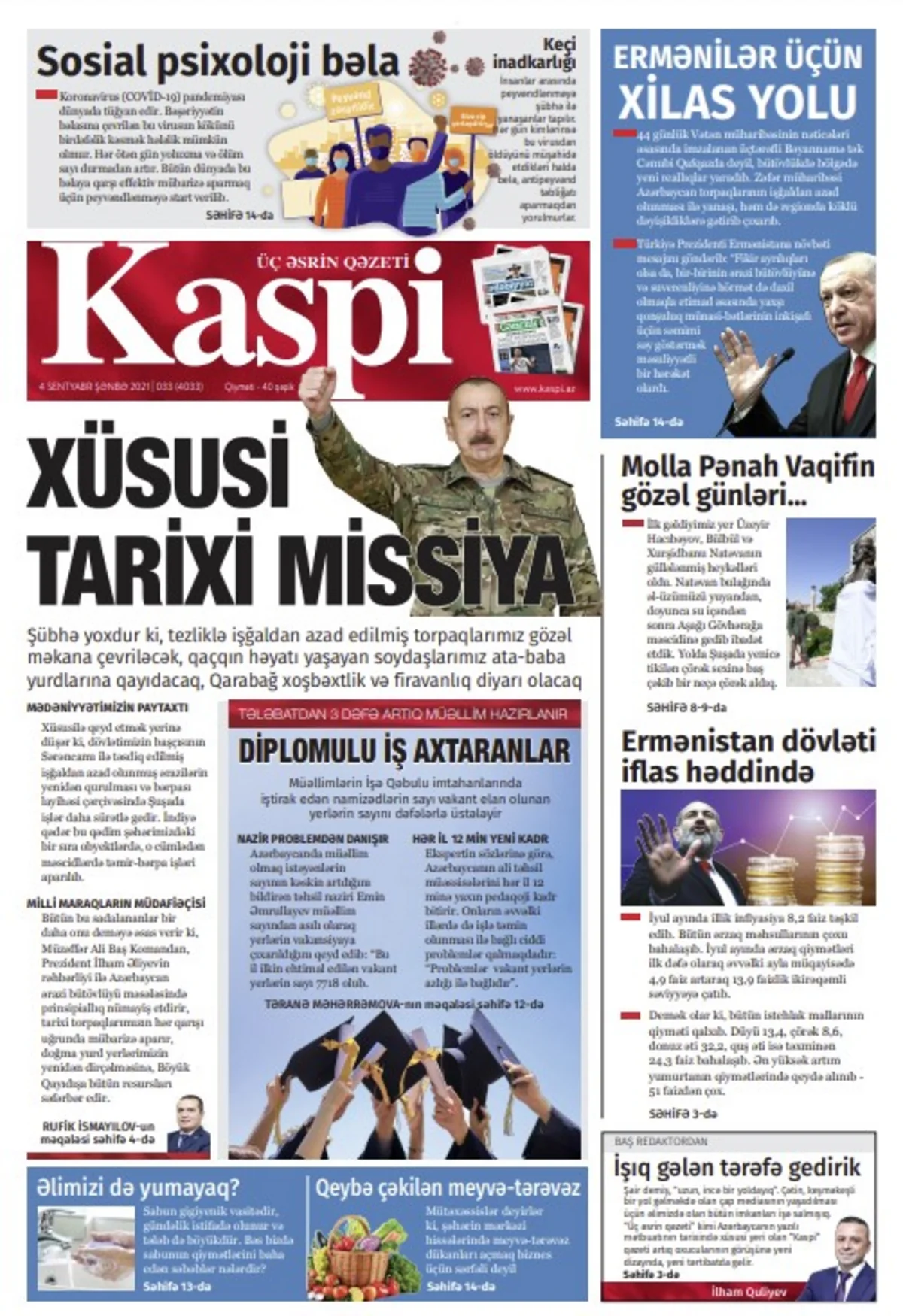Üç əsrlik tarixi olan “Kaspi” qəzeti təkmilləşdirilmiş variantda hazırlanaraq oxucuların istifadəsinə verilib.