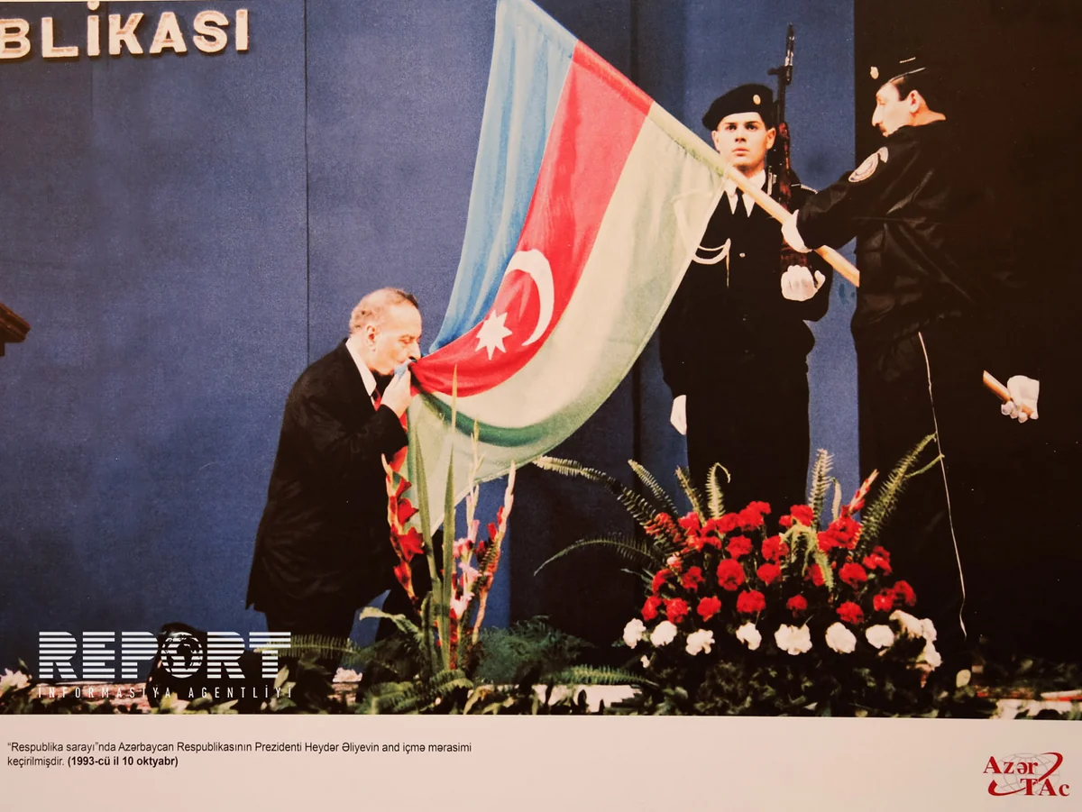 Sonda Heydər Əliyevin həyat və fəaliyyətinə həsr olunan fotolar nümayiş olunub.