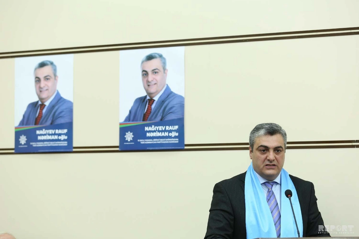 Daha sonra çıxış edən Rauf Nağıyev tədbir iştirakçılarına göstərdikləri dəstəyə görə təşəkkürünü bildirib. O xatırladıb ki, bu ilin fevralın 9-da Milli Məclisə seçkilərdə iştirak etmək üçün YAP tərəfindən namizədliyi irəli sürülüb: