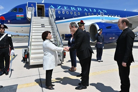 "Report" xəbər verir ki, Roma şəhərinin beynəlxalq hava limanında spiker Sahibə Qafarovanı Vatikan rəsmiləri, Azərbaycanın Müqəddəs Taxt-Tacdakı səfiri İlqar Muxtarov və ölkəmizin İtaliyadakı səfiri Rəşad Aslanov qarşılayıblar.