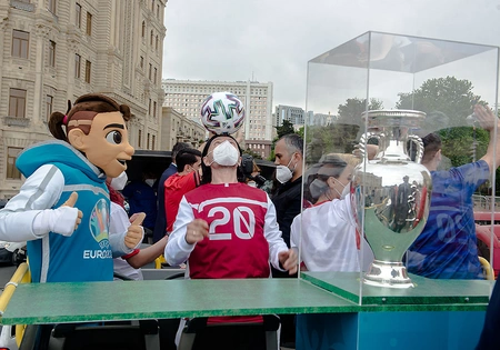 Futbol üzrə Avropa çempionatının əsas mükafatı olan “Anri Delone” kuboku Bakı turuna çıxıb.