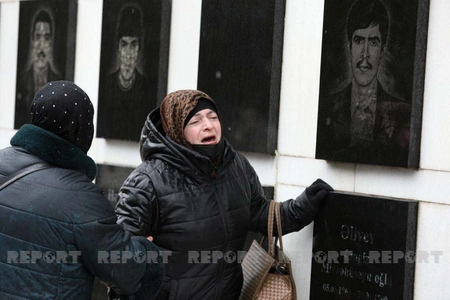 "Report" xəbər verir ki, ziyarətçilər şəhidlərin məzarı önünə gül dəstələri düzür, onların ruhuna dualar oxuyurlar.
