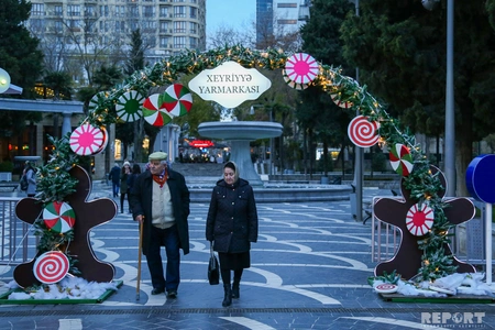 Xeyriyyə yarmarkası Fəvvarələr meydanındakı kiçik taxta evlərdə təşkil edilib. Burada doğmalar və yaxın adamlar üçün Yeni İl hədiyyələri, suvenirlər, kitablar, geyim və şirniyyat almaq, bununla da ehtiyacı olan uşaqlara böyük sevinc bəxş etmək olar. Satışa yalnız müxtəlif şirkətlərin məhsulları deyil, həm də internat məktəblərinin yetirmələri tərəfindən hazırlanan məmulatlar çıxarılıb.
