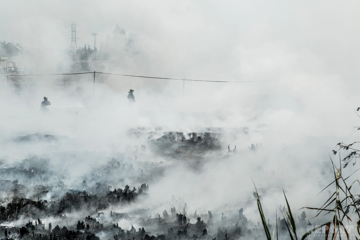 Bakıda qamışlıq yanıb - FOTOREPORTAJ