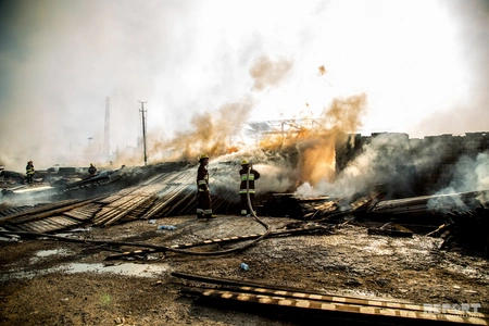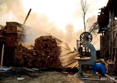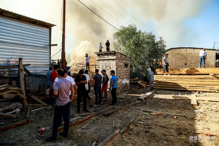 Bakının Nərimanov rayonunda "Baksol yolu" adlanan ərazidə taxta bazarı yanır.