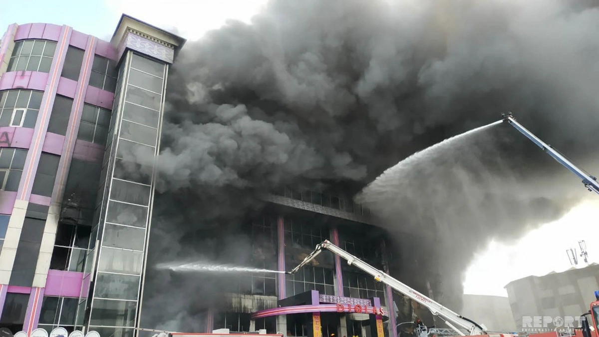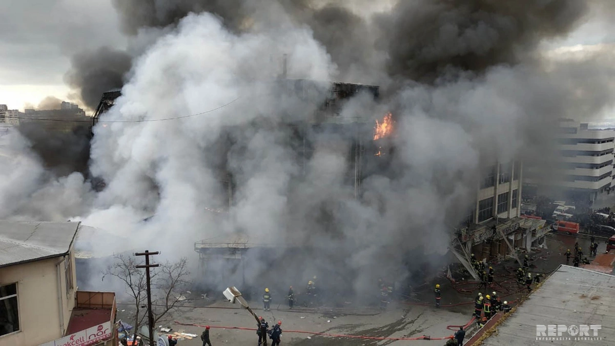 Bakıda ticarət mərkəzində güclü yanğın - FOTOREPORTAJ