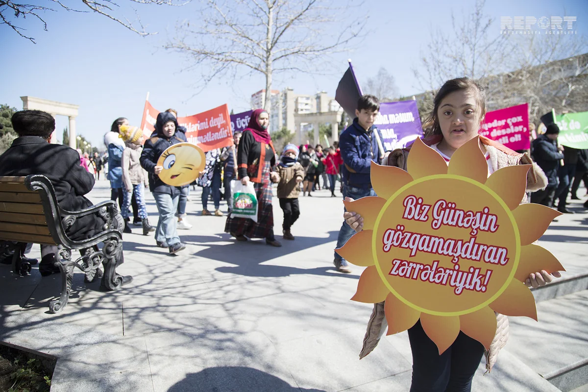Nizami rayonunda yerləşən “Heydər Bağı – Park Bulvar”da keçirilən yürüşün məqsədi 21 mart - Beynəlxalq Daun Sindromu Günü ərəfəsində ictimaiyyətin diqqətini bu məsələyə cəlb etmək, daun sindromlu şəxslərin cəmiyyətdəki rolunun, yerinin nə dərəcədə əhəmiyyətli olduğunu vurğulamaq olub.