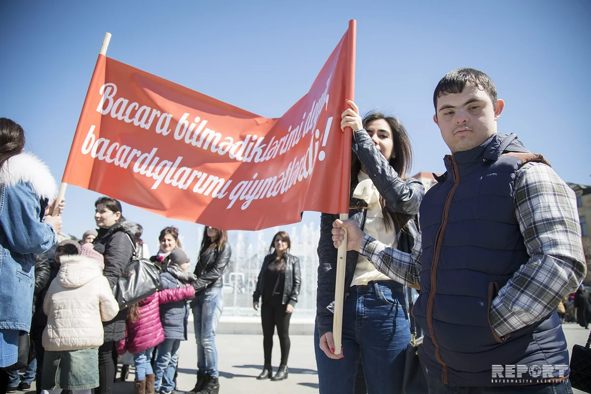 Bakı. 18 mart. REPORT.AZ/ Bu gün Yeni Azərbaycan Partiyası (YAP) Nizami rayon təşkilatının Gənclər Birliyi və “Qayğı - Sağlam Nəsil Naminə” İctimai Birliyinin birgə təşkilatçılığı ilə Beynəlxalq Daun Sindromu Günü ilə əlaqədar “Biz də hamı kimiyik!” adı altında yürüş keçirilib.