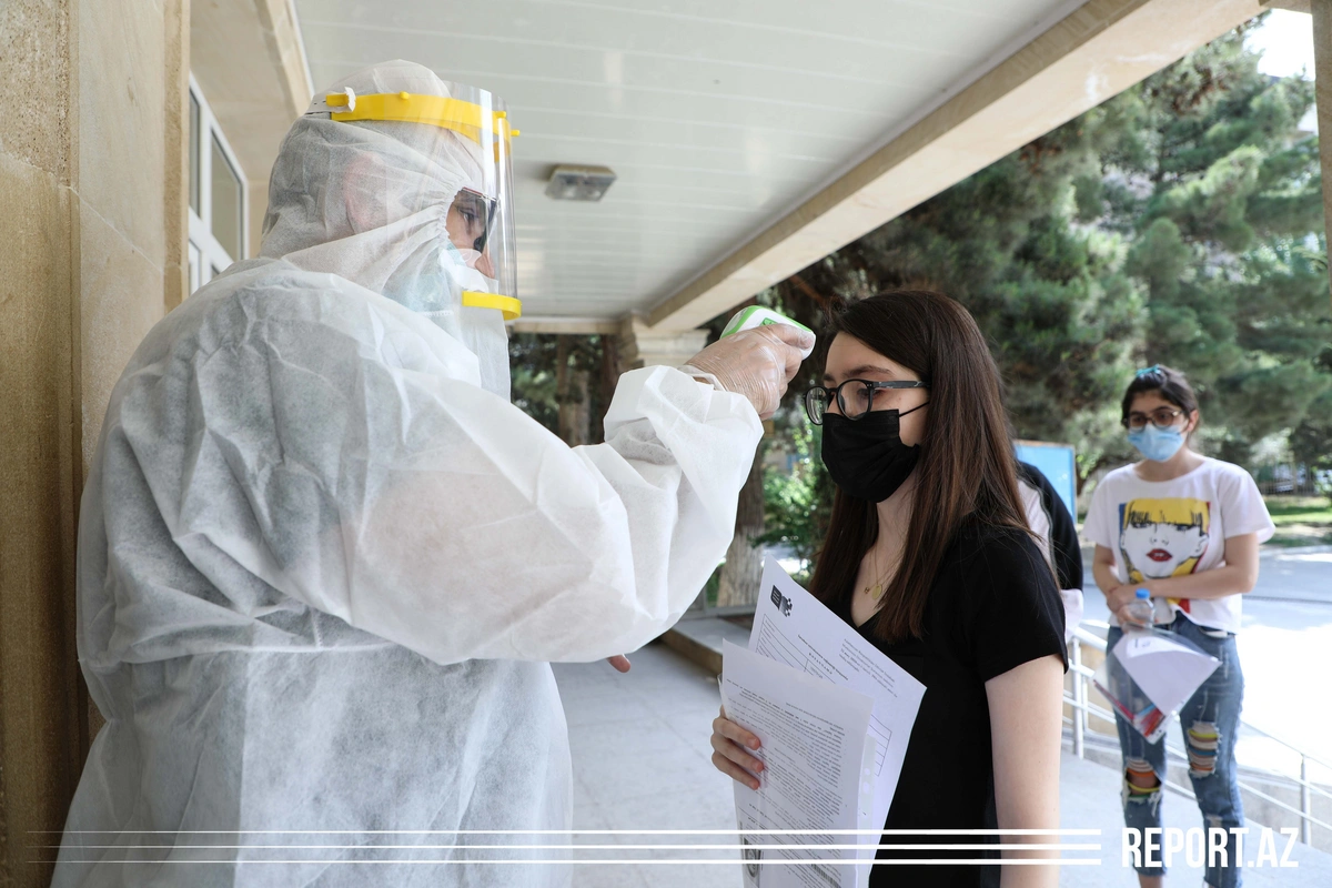 İştirakçılar imtahana tibbi maska ilə gəliblər. İmtahan binasına daxil olan iştirakçılarının məsafədən ölçə bilən elektron termometrlə bədən hərarətləri yoxlanılıb, zəruri dezinfeksiyaedici vasitələrdən istifadə olunub.