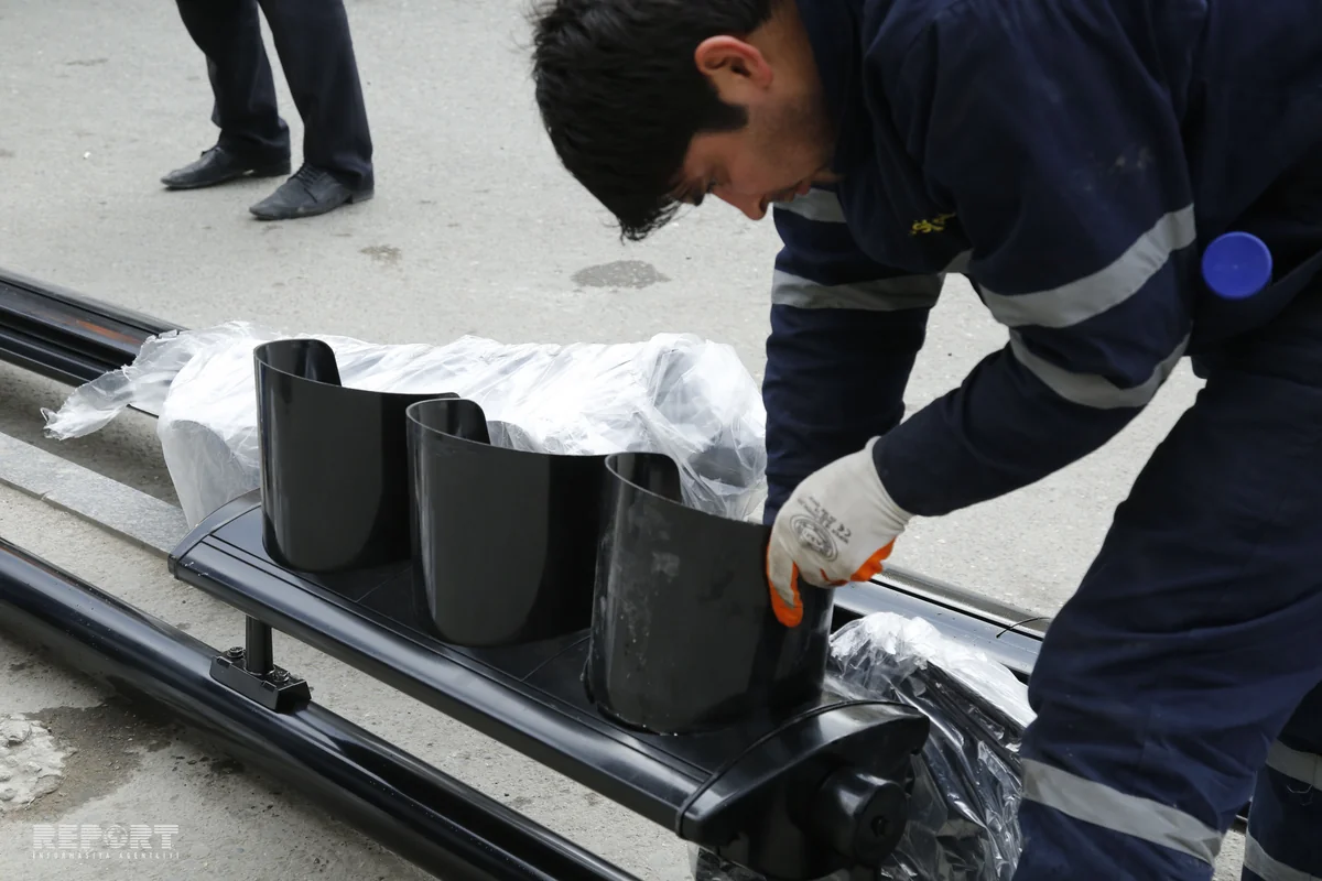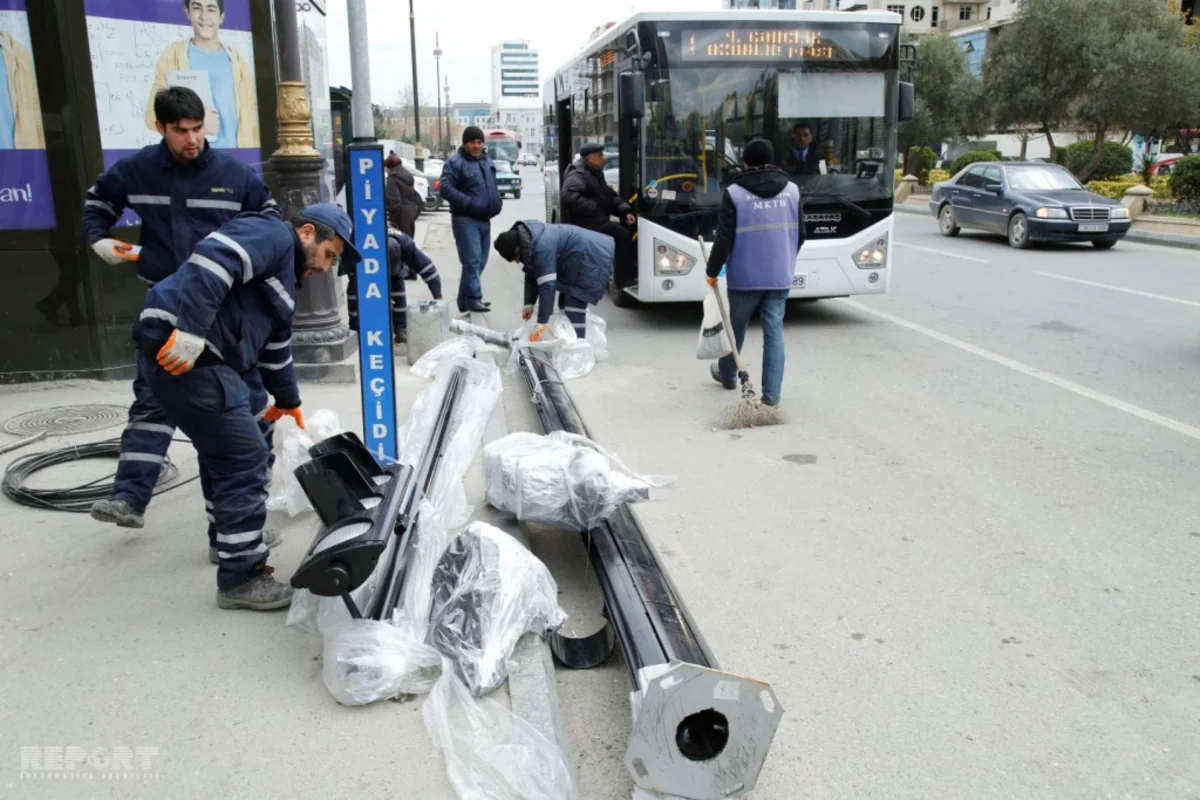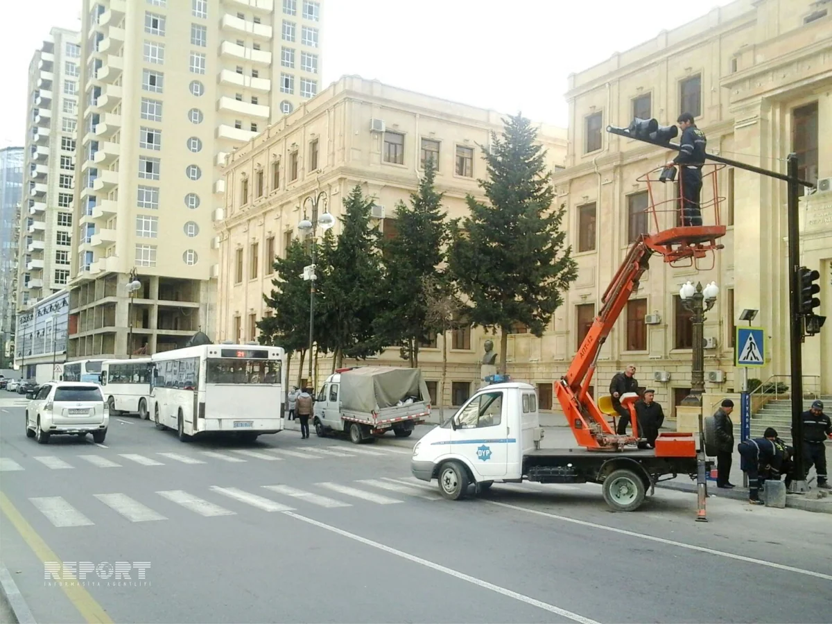Bakıda tıxac yaradan piyada keçidlərinin qarşısında işıqfor quraşdırılır - FOTO