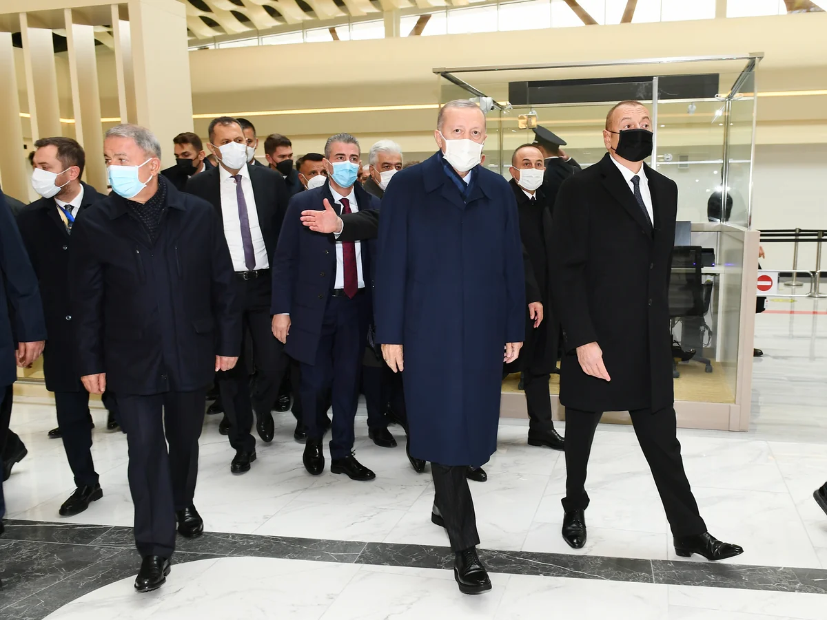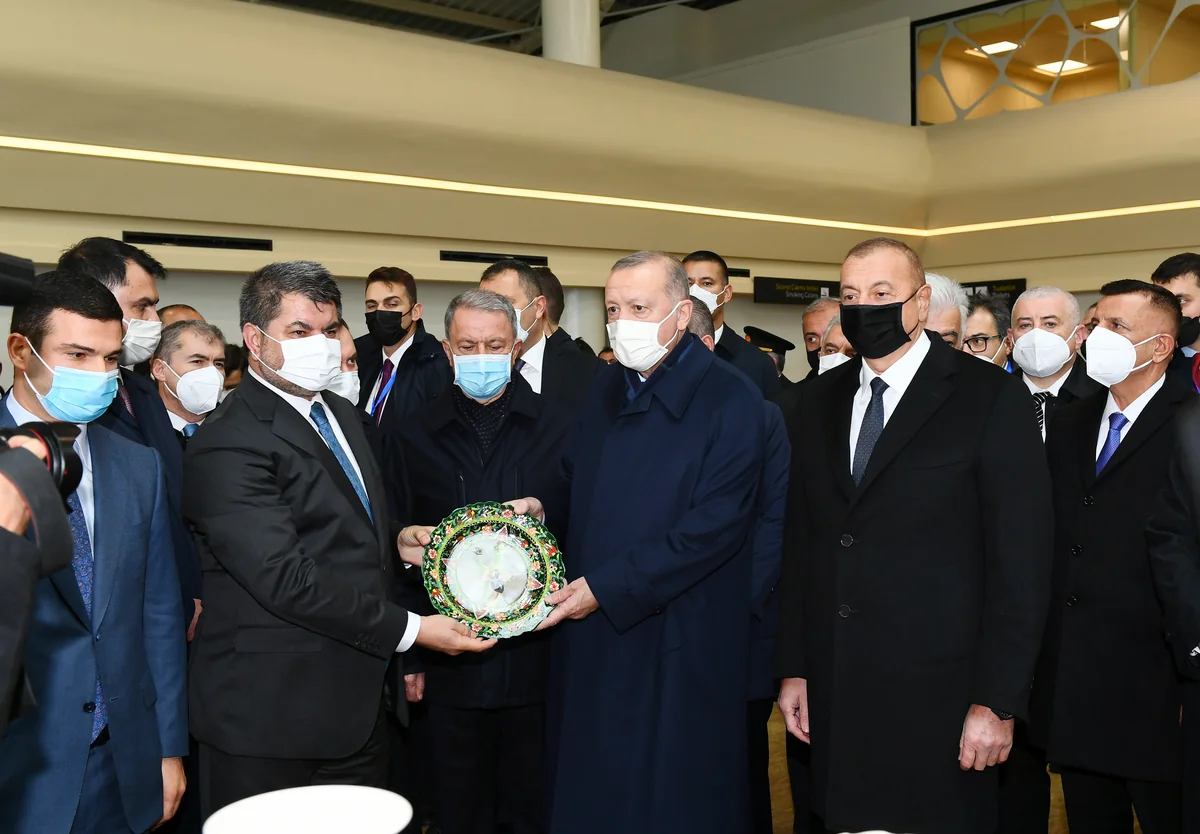 İki ölkənin liderlərinə Füzuli Beynəlxalq Hava Limanının rəmzi açarları təqdim edilib.