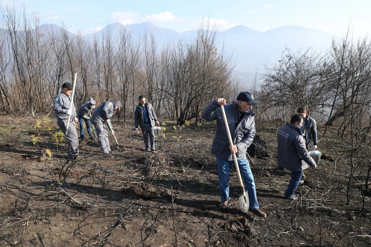 Qəbələnin yanğına məruz qalmış meşə sahəsinə ağac toxumları səpilib
