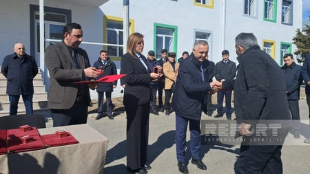 Ağdərə rayonunun Həsənriz kəndinə köçən ailələrə mənzillərin açarları təqdim olunub.