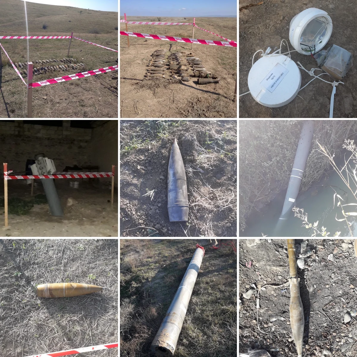 Aparılan əməliyyat-axtarış tədbirləri zamanı 175 ədəd partlamamış hərbi sursat (PHS), 2 ədəd hərbi məqsədlər üçün istifadə olunan meteoroloji radiopelenqator və 35 ədəd partlamış mərmi qalıqları aşkar olunub.