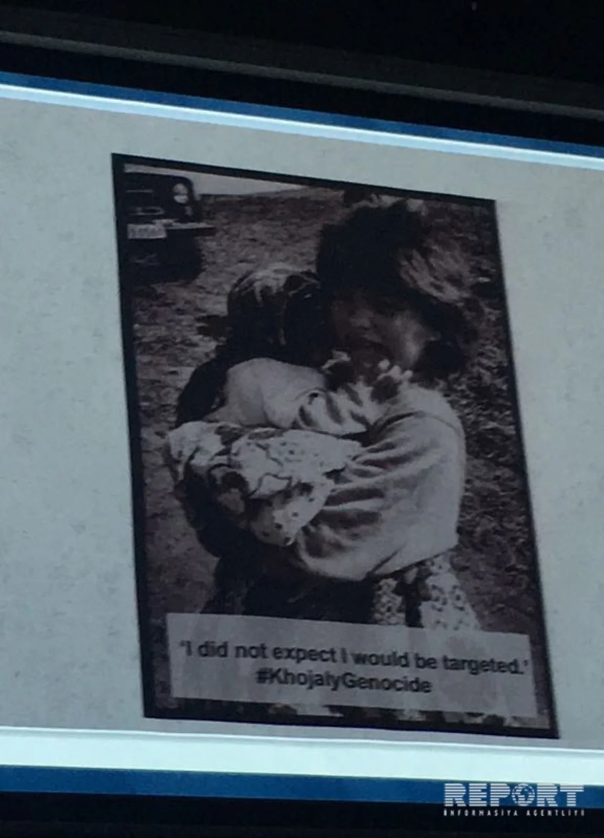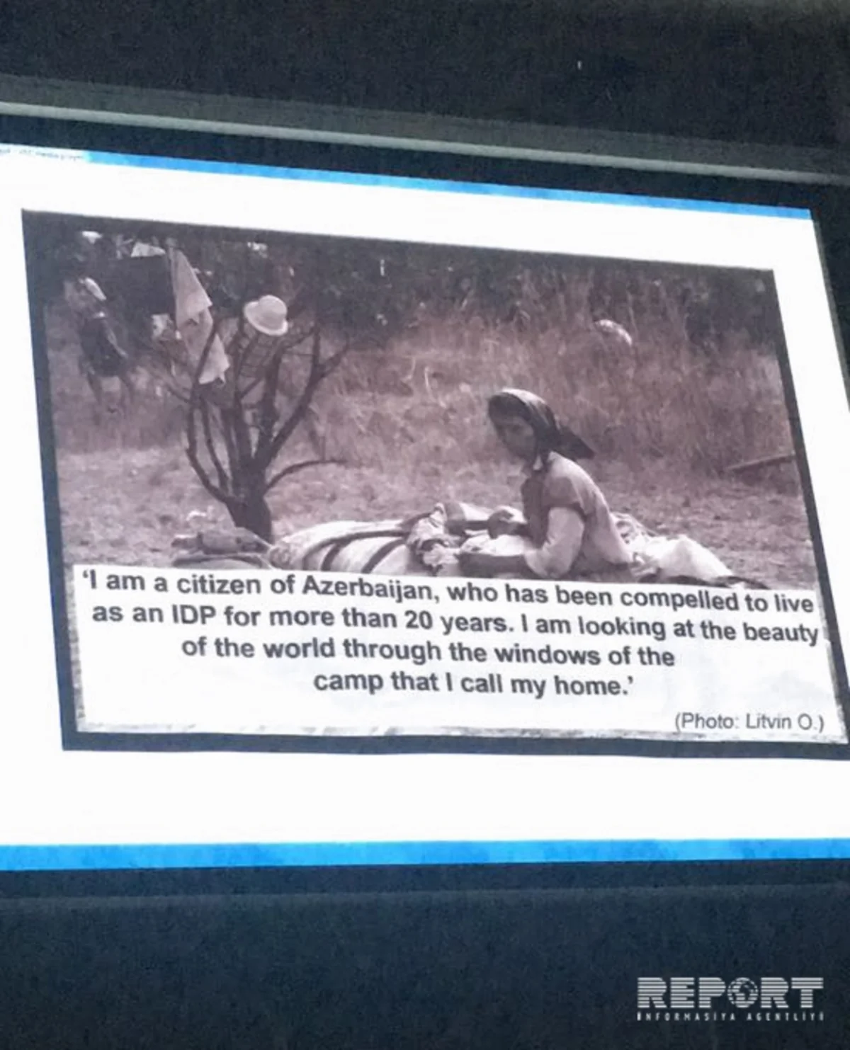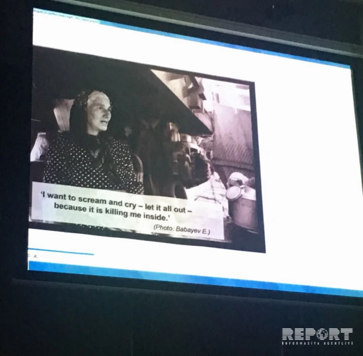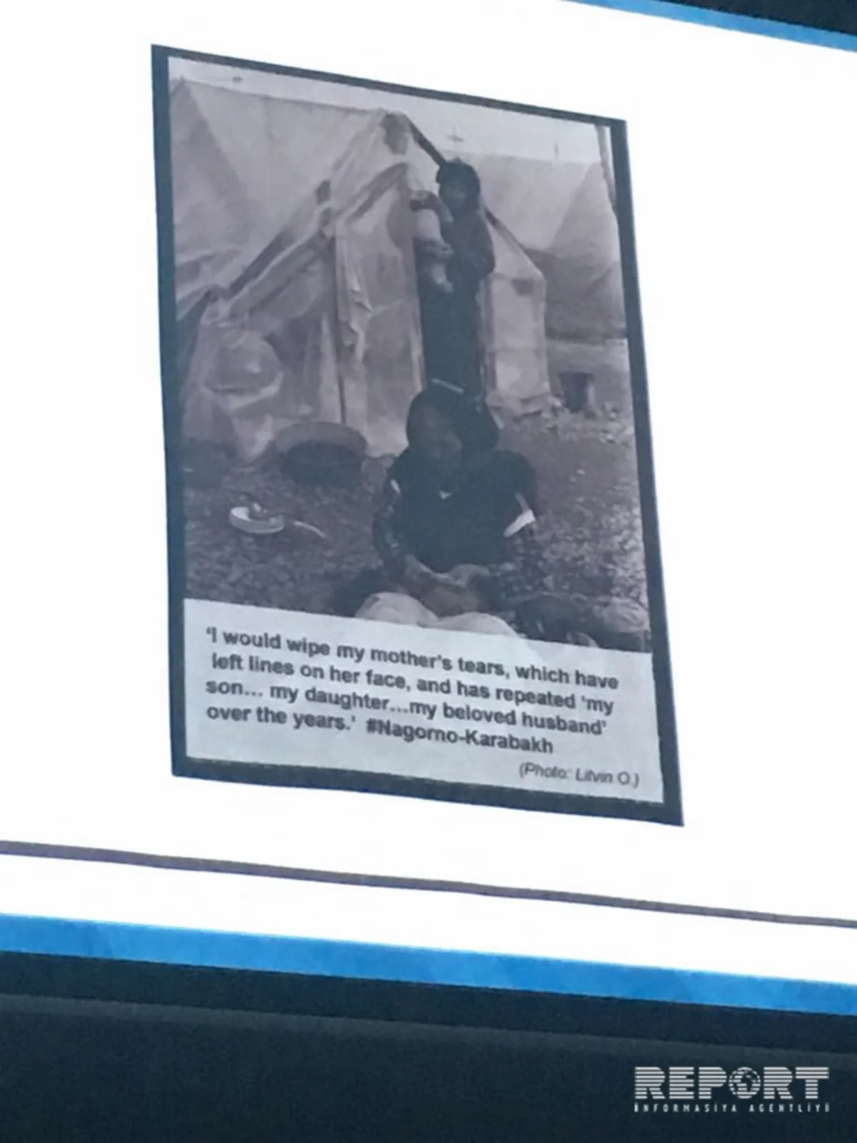 Tədbirdə Rafiq Qəmbərov,Məhəmməd İsmayılov, Oleq Litvin, Elnur Babayev, Xalid Əsgərov, Mirnaib Həsənoğlu və digər azərbaycanlı fotoqrafların şəkillərinin virtual sərgisi vasitəsilə Dağlıq Qarabağ münaqişəsi nəticəsində doğma yurd-yuvasını tərk etmək məcburiyyəti ilə üzləşmiş azərbaycanlı qaçqın qadınların və uşaqların acı taleləri, yalnız münaqişə zəminində deyil, həmçinin münaqişədən sonra üzləşdikləri ağır durumları konfrans iştirakçılarına nümayiş etdirilib.