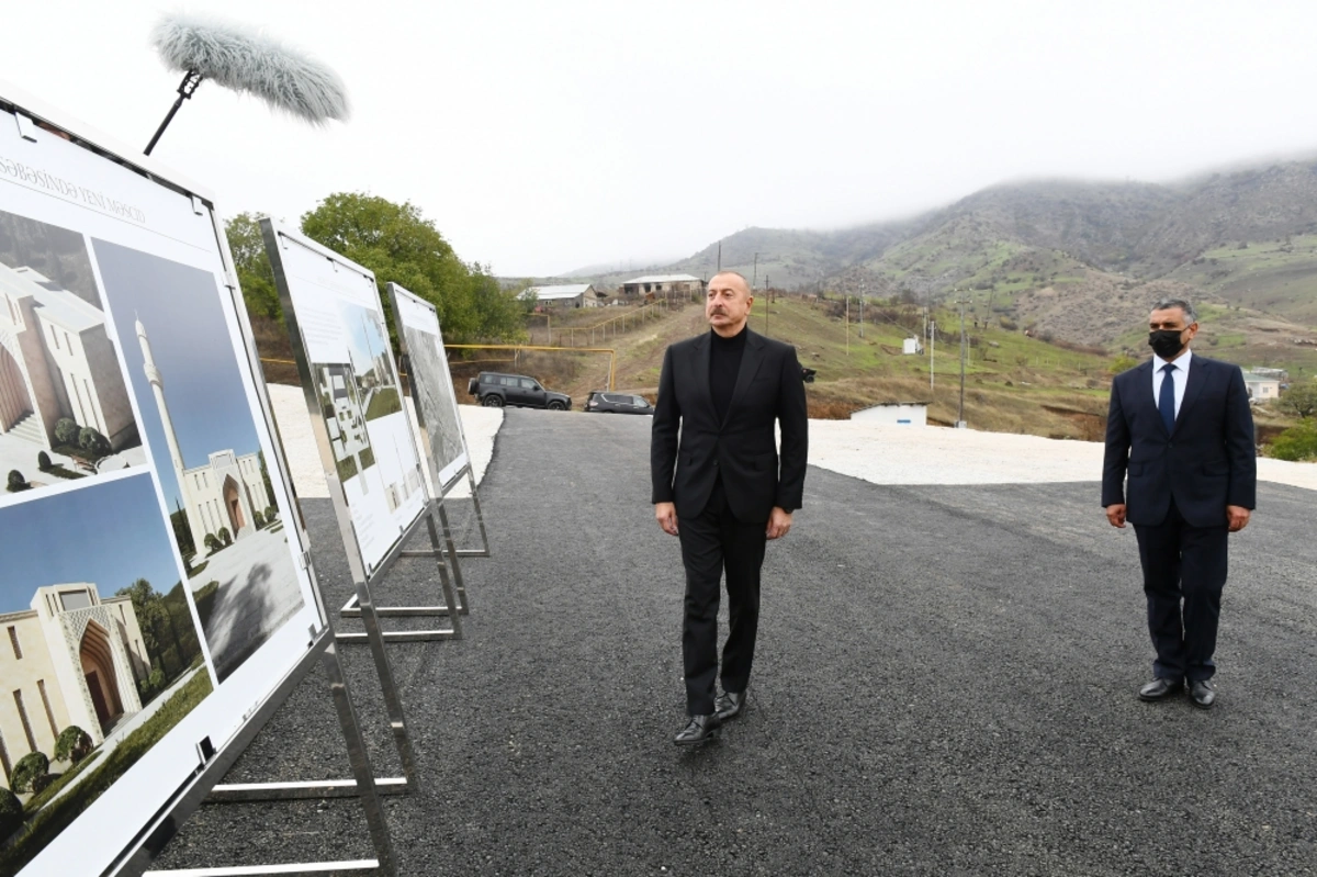 Azərbaycan Prezidenti Hadrutda yeni məscidin təməlini qoyub