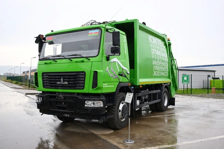 Belarus tərəfi parkı ziyarət zamanı Ağdam, Füzuli və Xocavənd rayonlarında Bərpa, Tikinti və İdarəetmə Xidmətinə MAZ-5907S2-012 markalı kommunal təyinatlı avtomobil hədiyyə edib.
