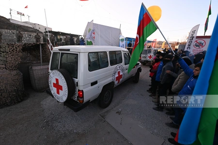 “Report”un aksiyanı işıqlandıran əməkdaşının verdiyi xəbərə görə, onlar 08:47-də Beynəlxalq Qırmızı Xaç Komitəsinə məxsus "Toyota Land Cruiser" markalı 3 avtomobil aksiya yerindən keçərək Xankəndidən Laçına doğru hərəkət ediblər.
