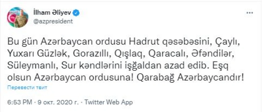 Bundan sonra Hadrut döyüşlərində uğursuzluğa dözə bilməyən düşmən yalan məlumatlar yaymağa başlayıb. Ermənistan rəhbərliyi, bu ölkənin rəsmi şəxsləri və düşmən dəyirmanına su tökən bəzi xarici jurnalistlər Hadrutun guya ermənilərin nəzarətində olduğu barədə dezinformasiyalar yayıblar.