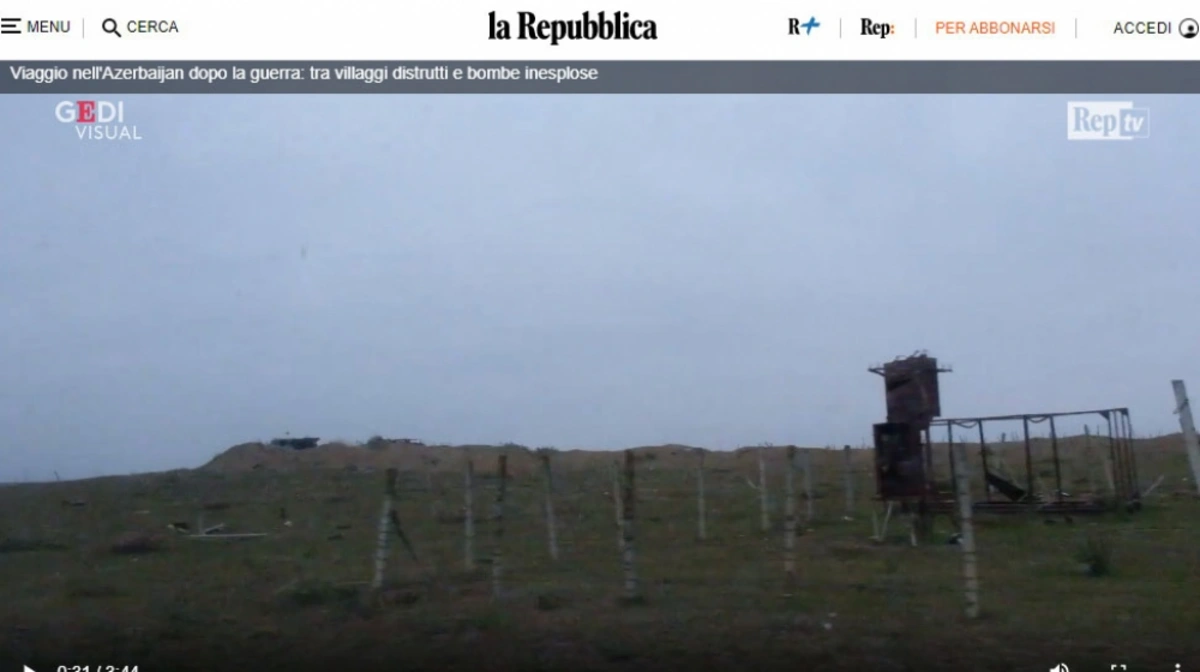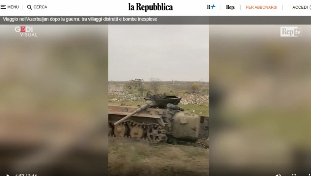 Noyabrın 20-də İtaliyanın nüfuzlu və çoxsaylı oxucu kütləsinə malik “la Repubblica” qəzetinin veb səhifəsində həmin qəzetin Azərbaycana ezam olunmuş müxbiri Pietro del Renin hazırladığı “Müharibədən sonra Azərbaycana səfər: dağılmış kəndlər və partlamamış bombalar arasında” adlı videoreportajı yayımlanıb.