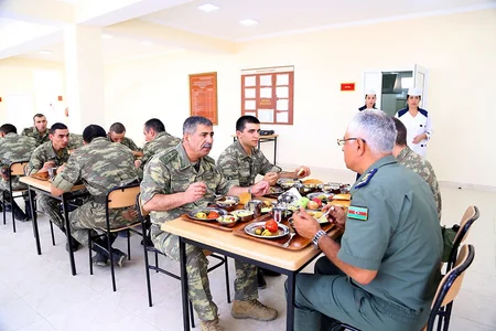 Sonra Müdafiə Nazirliyinin rəhbərliyi hərbi qulluqçularla birgə nahar edib.