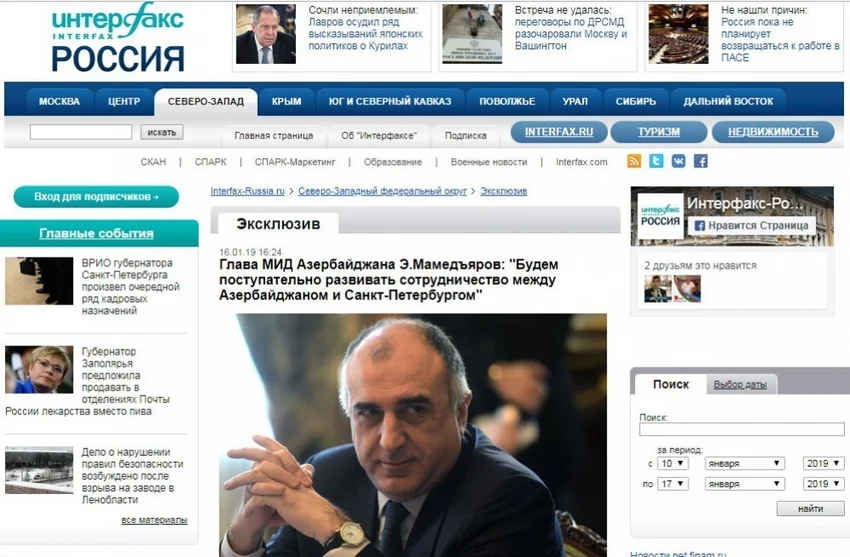 "Report" AZƏRTAC-a istinadən xəbər verir ki, bunu Azərbaycanın xarici işlər naziri Elmar Məmmədyarov “İnterfaks” agentliyinə eksklüziv müsahibəsində bildirib.