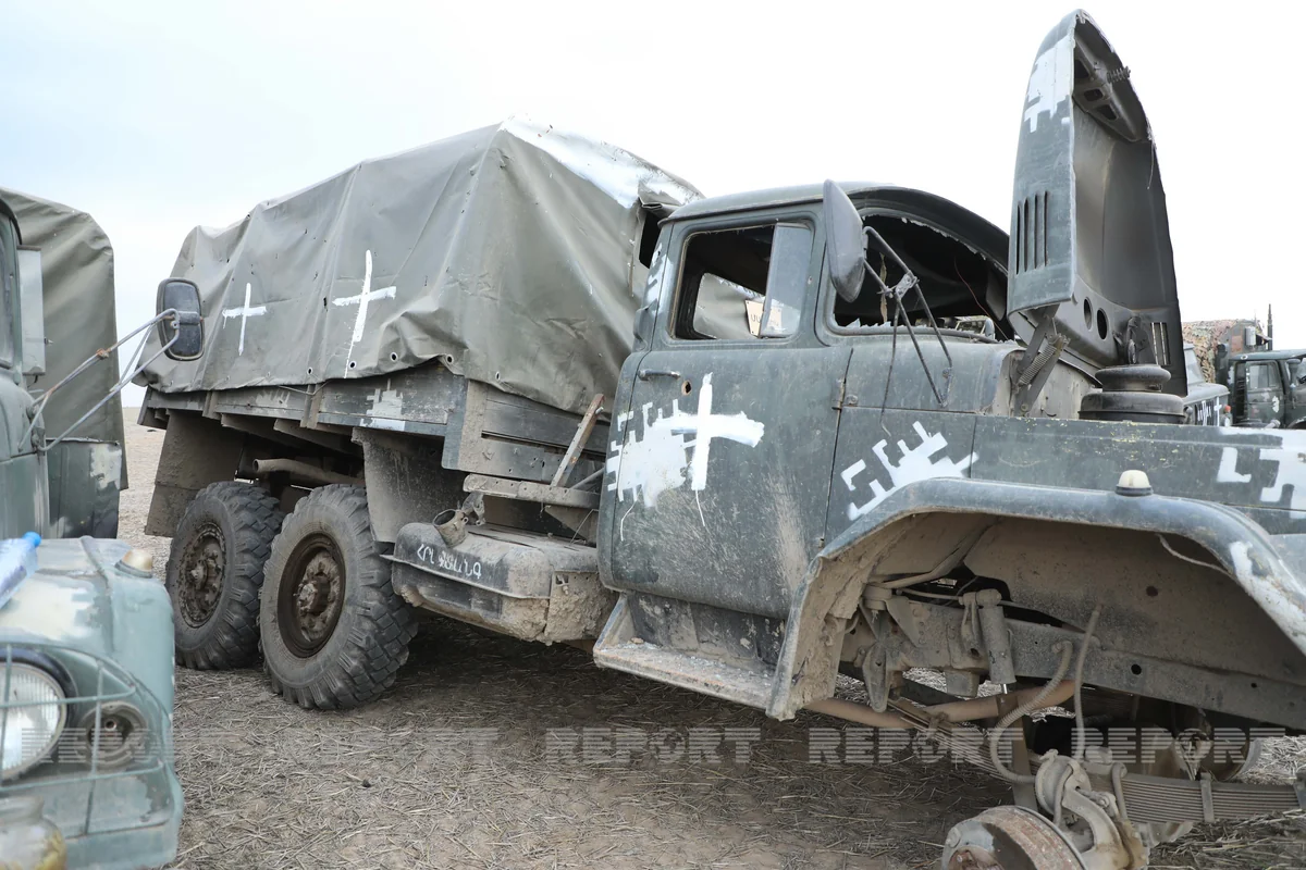 Həmçinin ərazilərdə düşmənə məxsus saz vəziyyətdə olan hərbi texnikalar və məhv edilmiş tanklar, avtomobillər sıra ilə düzülüb. Ermənilər həmin hərbi texnikaları döyüş meydanında qoyaraq qaçıblar.