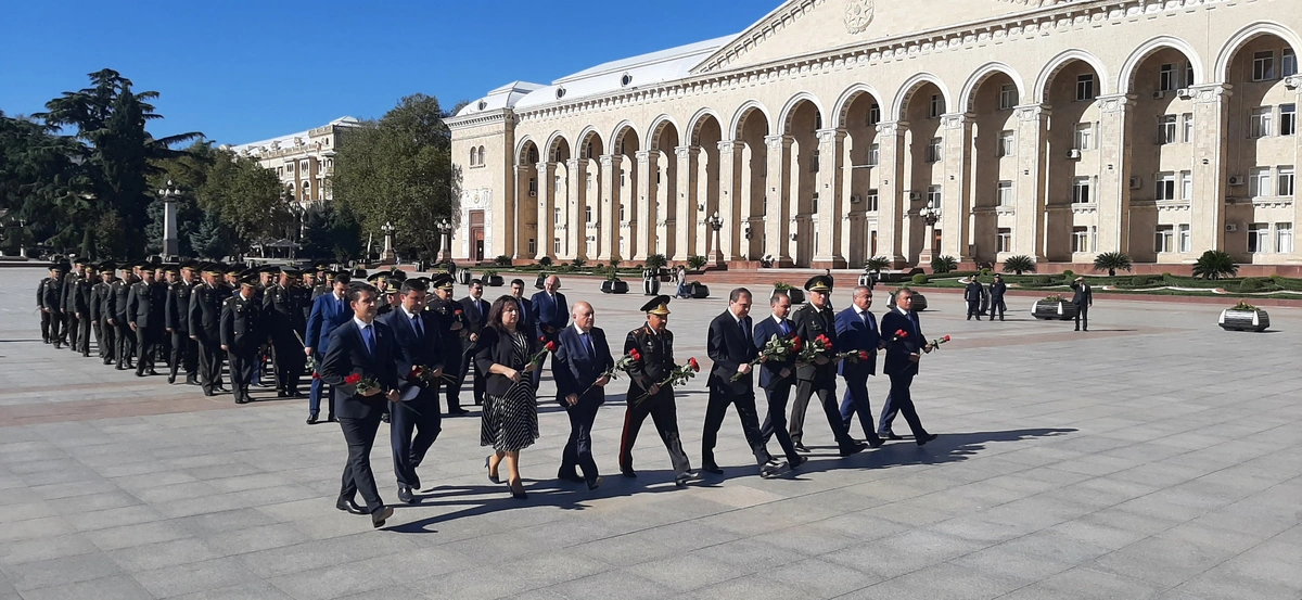 Əvvəlcə rəsmilər şəhərin mərkəzində ucaldılan ümummilli lider Heydər Əliyevin abidəsini ziyarət edib, önünə tər güllər düzüblər. Anım mərasimi iştirakçıları monitor vasitəsilə Müzəffər Ali Baş Komandan, Prezident İlham Əliyevin xalqa müraciətini dinləyiblər.