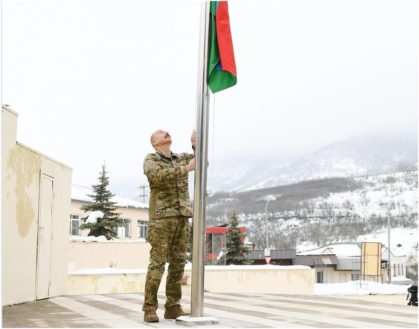 2021-ci ilin martın 16-da Silahlı Qüvvələrin Müzəffər Ali Baş Komandanı, Prezident İlham Əliyev Hadrut qəsəbəsində dövlət bayrağını qaldırıb və çıxış edib. Ali Baş Komandan çıxışında Hadrutun işğaldan necə azad olunduğunu açıqlayıb.