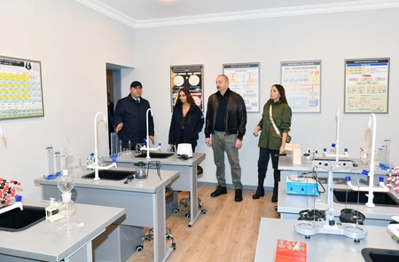 Prezident İlham Əliyev, birinci xanım Mehriban Əliyeva və qızları Arzu Əliyeva Suqovuşan qəsəbəsində orta məktəb binasında yaradılan şəraitlə tanış olublar.