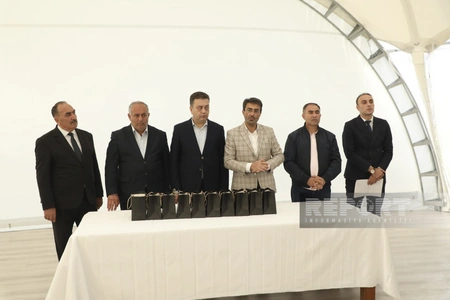 Açarları Şərqi Zəngəzur iqtisadi rayonuna daxil olan Laçın rayonunda Azərbaycan Respublikası Prezidentinin Xüsusi Nümayəndəliyinin aparıcı məsləhətçisi Qalib Abasov, "Laçın Abadlıq" ASC-nin direktoru Nəsimi Əsədov və onun müavini Elnur Abdullayev təqdim ediblər.