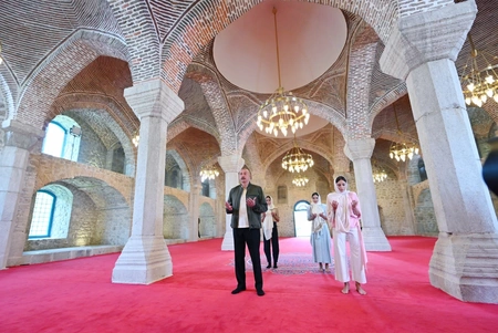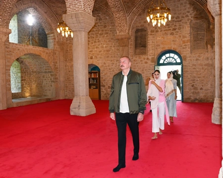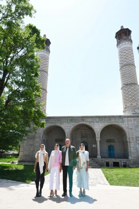 Azərbaycan Respublikasının Prezidenti İlham Əliyev, birinci xanım Mehriban Əliyeva, qızları Leyla Əliyeva və Arzu Əliyeva mayın 13-də Şuşada Yuxarı Gövhərağa məscidində olublar.