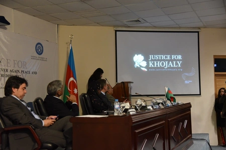Azərbaycana məxsus Dağlıq Qarabağda Ermənistan tərəfindən aparılan işğalçılıq siyasətinin önəmli təzahürlərindən birinin ermənilərin Xocalıda törətdiyi soyqırım olduğunu ifadə edən İslamabad Strateji Tədqiqatlar İnstitutunun direktoru, sabiq səfir Xalid Mahmud BMT Təhlükəsizlik Şurasının müvafiq qətnamələrinin Ermənistanın işğal etdiyi Azərbaycan torpaqlarını qeydsiz-şərtsiz tərk etməsini tələb etdiyini, lakin Ermənistanın buna məhəl qoymadığını diqqətə çatdırıb. O, beynəlxalq hüququn müəyyən etdiyi tərifə əsasən, heç bir fərqləndirmə aparılmadan Ermənistanın Xocalıda Azərbaycanlıları kütləvi şəkildə qətlə yetirməsinin soyqırım olduğunu, özünün Azərbaycana səfəri zamanı Quba məzarlığında “Böyük Ermənistan” xəyalları ilə ermənilərin həyata keçirdiyi soyqırım siyasətinin şahidi olduğunu qeyd edib. Direktor, həmçinin Pakistanın Dağlıq Qarabağ məsələsində Azərbaycanı həmişə dəstəklədiyini, Pakistan Milli Assambleyası və Senatının xarici işlər üzrə komitələrinin Xocalıda Ermənistanın soyqırım törətdiyini tanıyan və Ermənistanın işğal etdiyi Azərbaycan torpaqlarını tərk etməsini tələb edən qətnamələr qəbul etdiyini iştirakçıların nəzərinə çatdırıb.