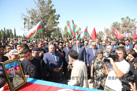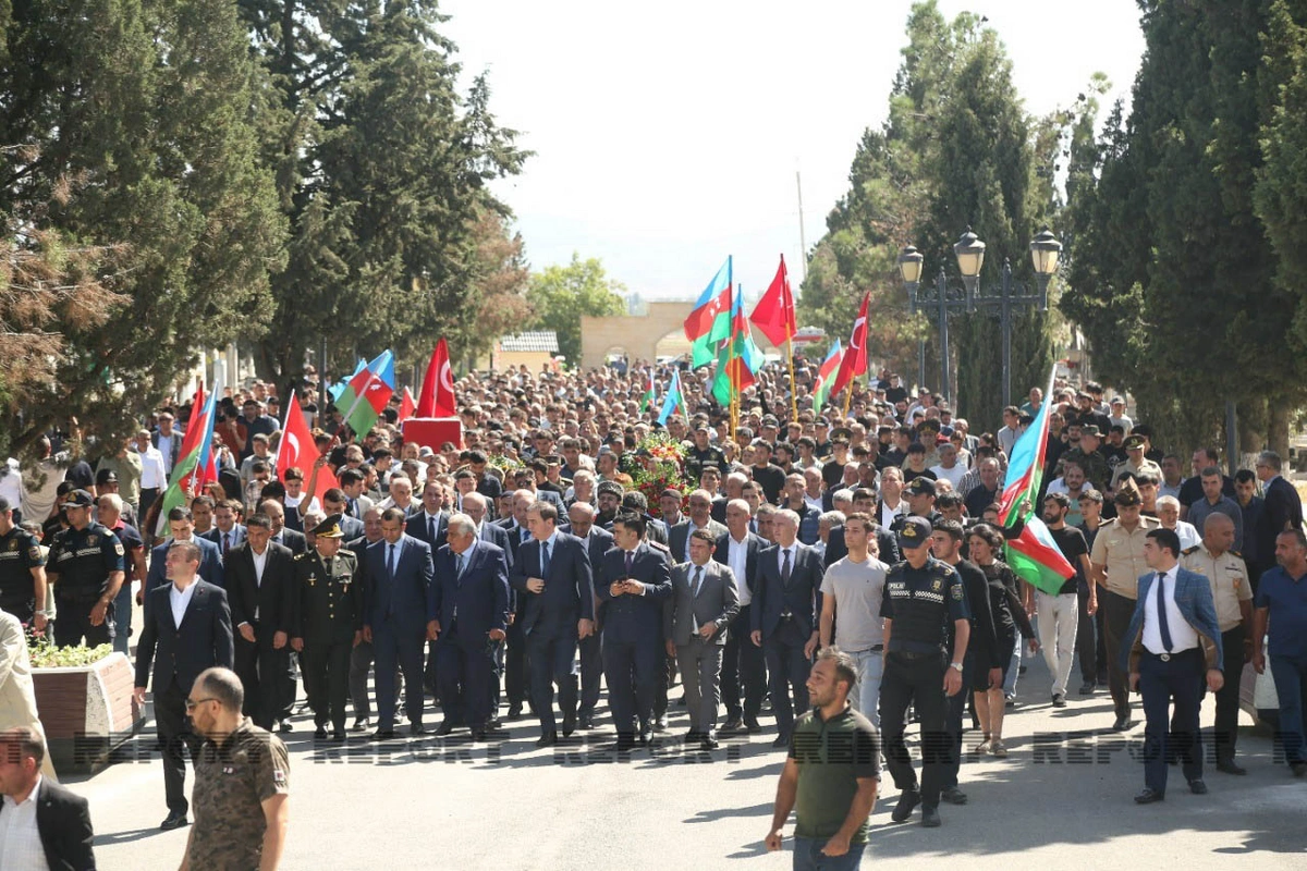 Dəfn mərasimində şəhidin yaxınları, rəsmi şəxslər, ictimaiyyət nümayəndələri, hüquq-mühafizə orqanlarının əməkdaşları və sakinlər iştirak ediblər.