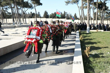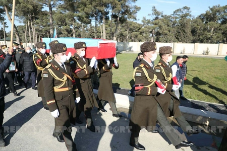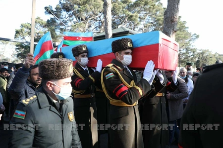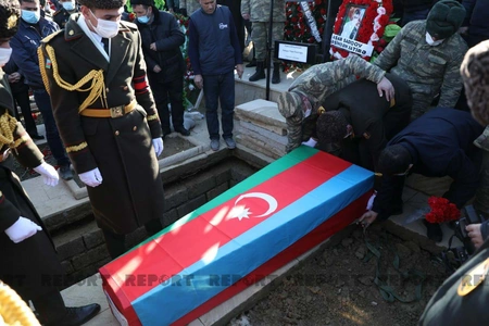Dəfn mərasimində hərbi orkestrin iştirakı ilə dövlət himni səsləndirilib və havaya yaylım atəşi açılıb.