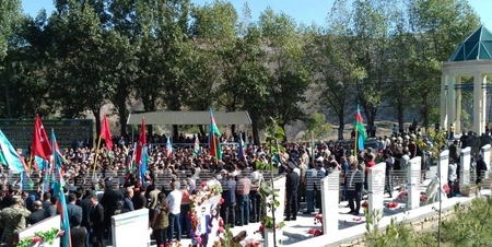 Şəhid böyük iztahamla torpağa tapşırılıb.