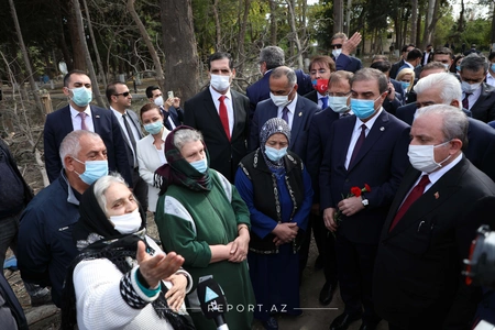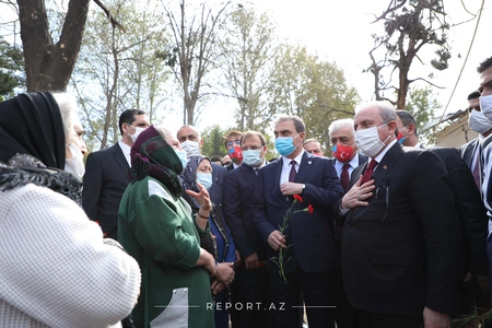 Türkiyə Böyük Millət Məclisinin (TBMM) sədri Mustafa Şentop Gəncəyə səfəri zamanı erməni terroru zamanı həlak olan şəxslərin yaxınları ilə görüşüb.