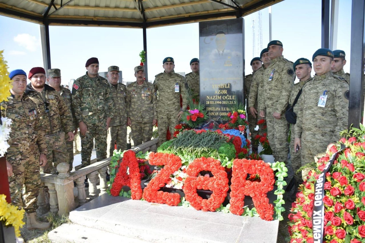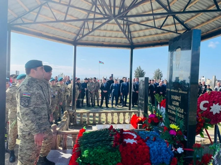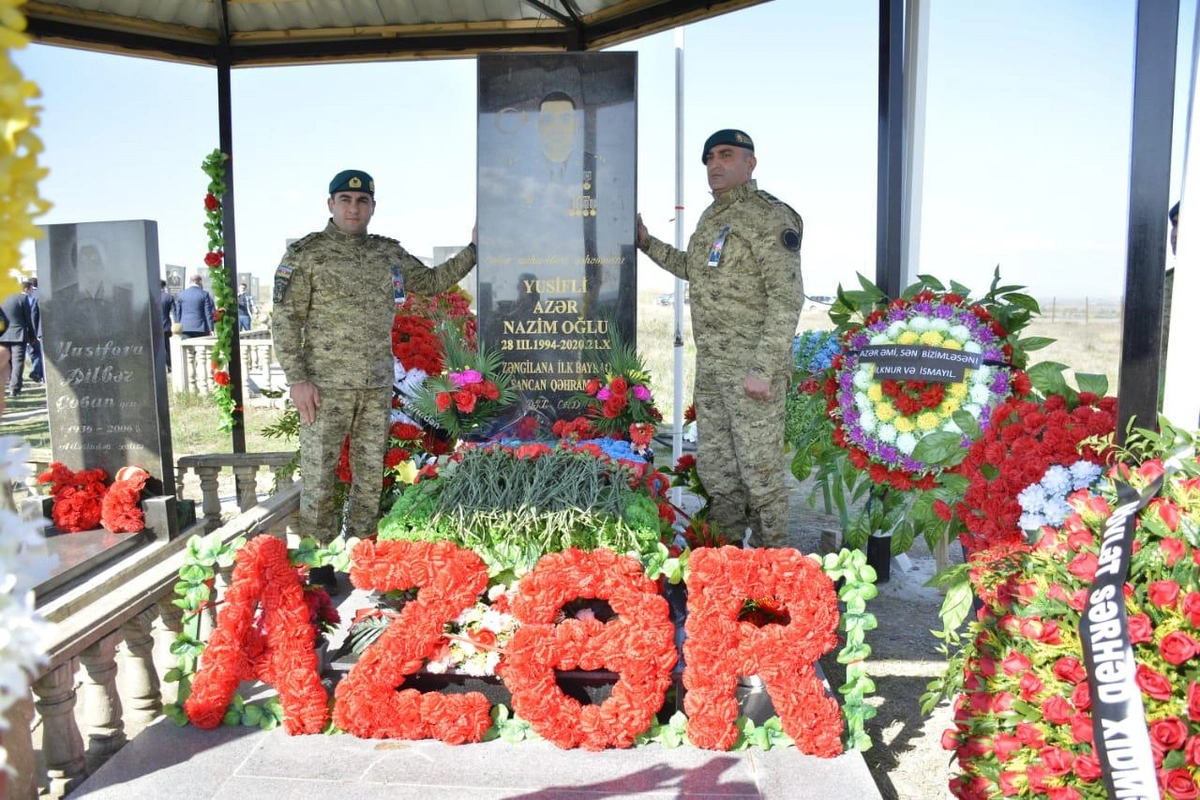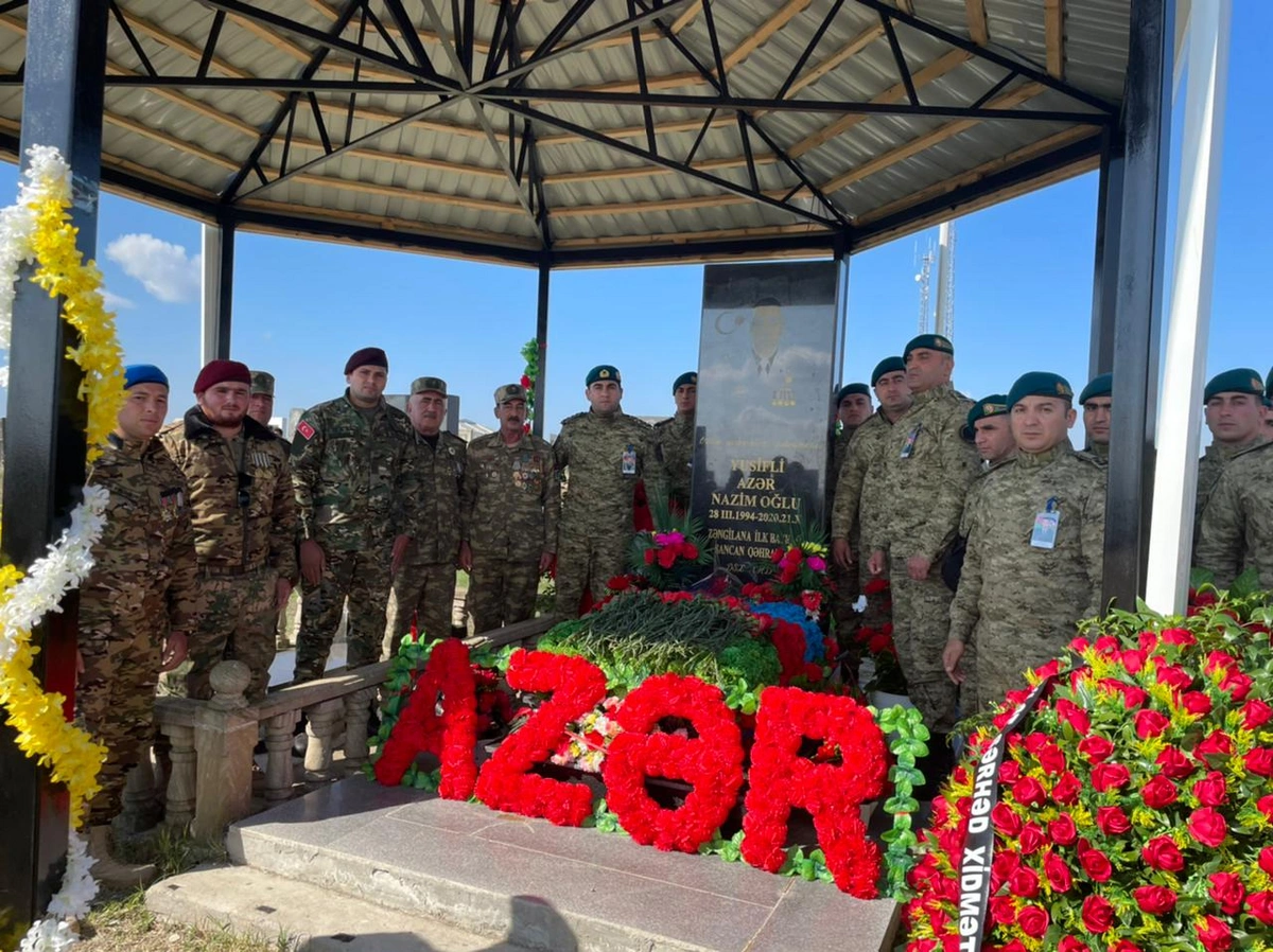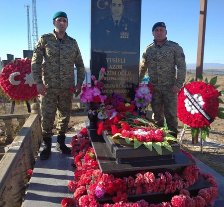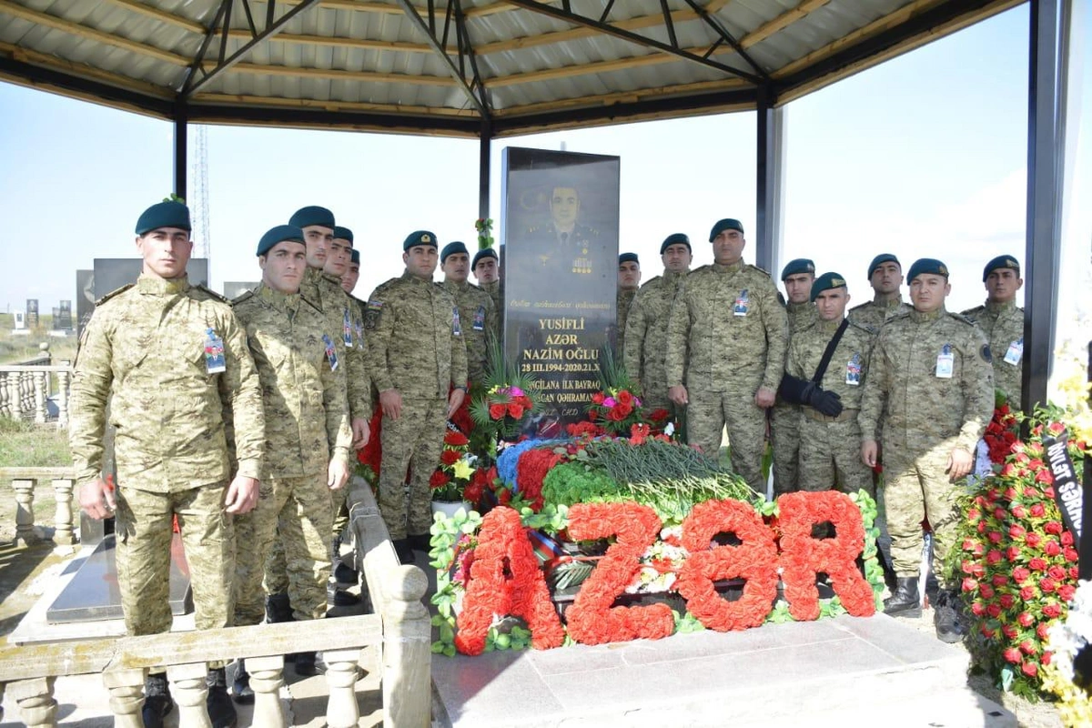 Daha sonra şəhidin məzarı ziyarət edilib, məzarı üzərinə tər güllər düzülüb və ruhuna dualar oxunub.