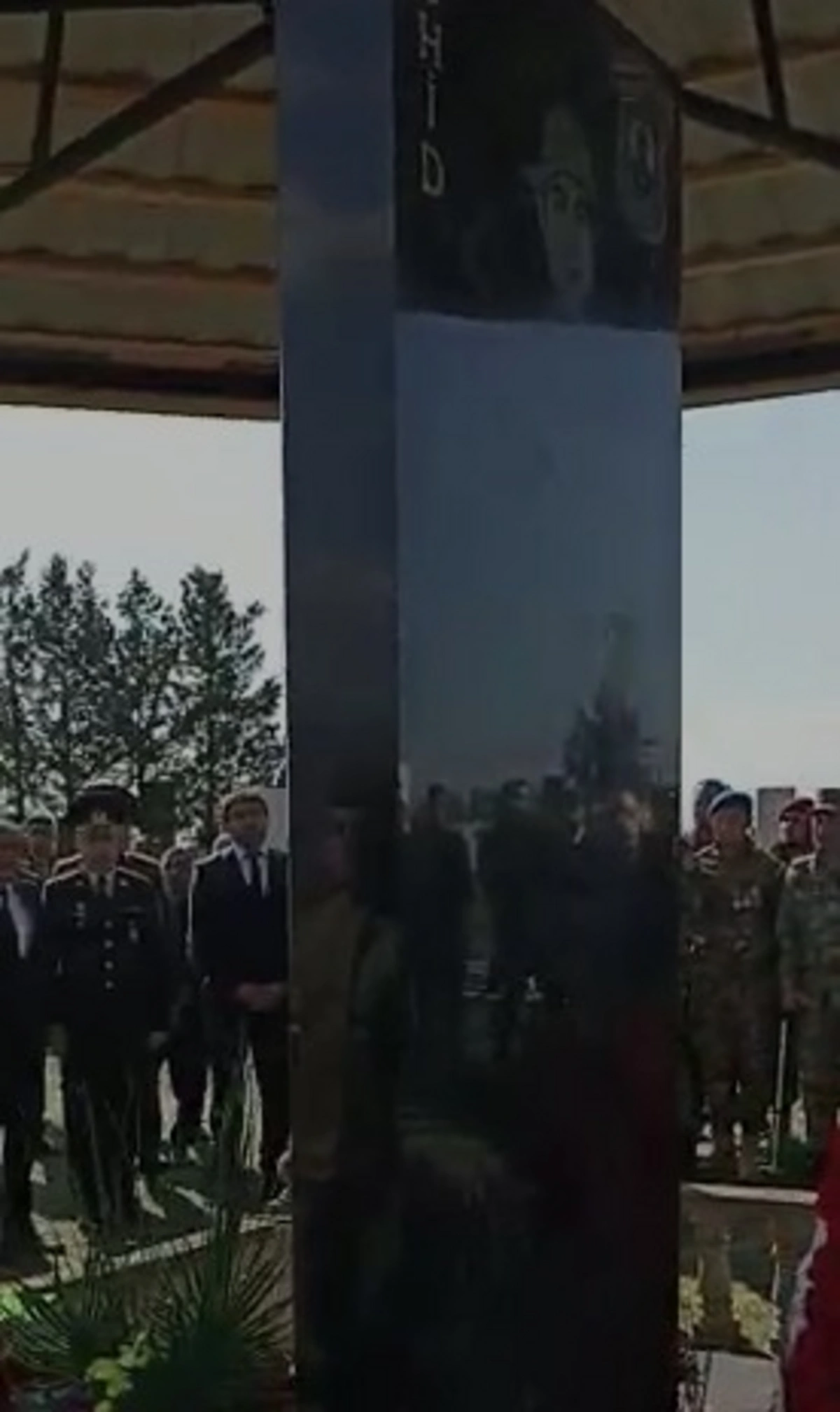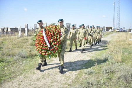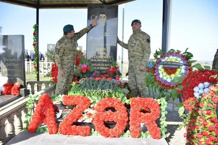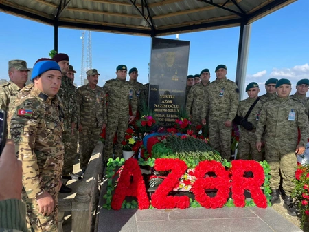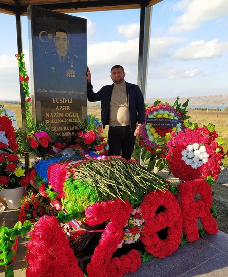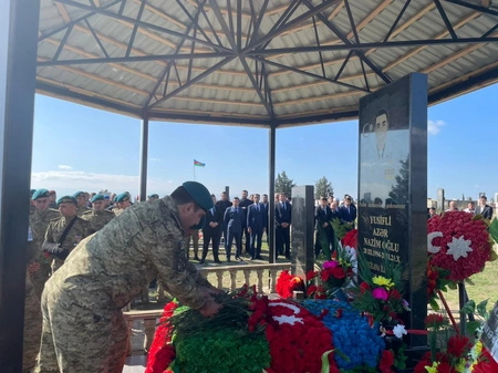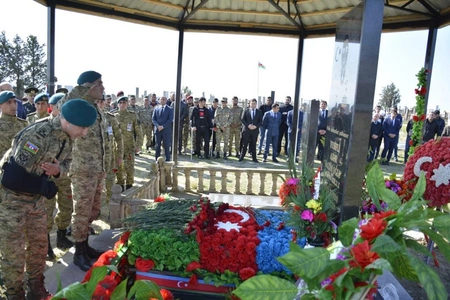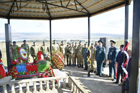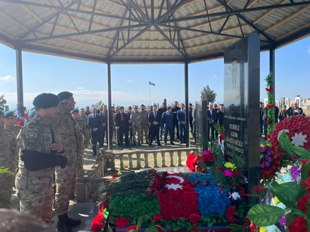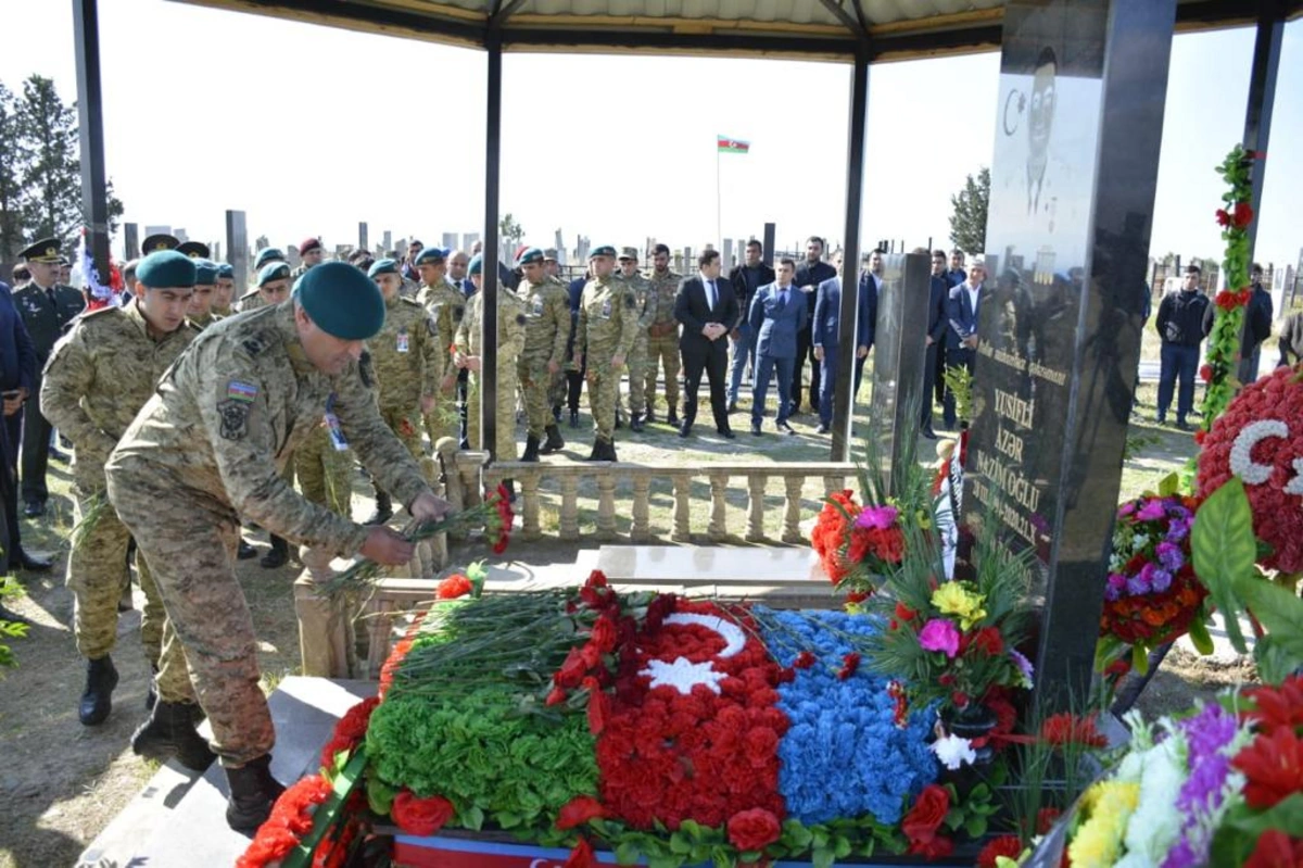 Daha sonra şəhidin məzarı ziyarət edilib, məzarı üzərinə tər güllər düzülüb və ruhuna dualar oxunub.