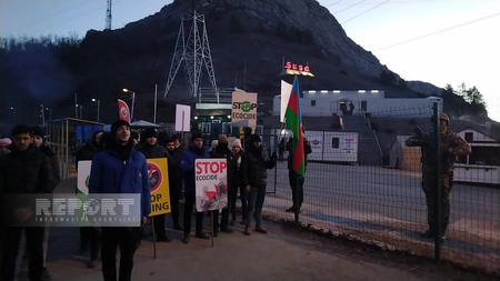 Hazırda havanın şaxtalı olmasına baxmayaraq, ekofəallar yolun hər iki tərəfində, hərəkətə maneə törətmədən üzərində Azərbaycan, rus və ingilis dillərində yazılmış plakatlar qaldırıb, şüarlar səsləndirirlər.